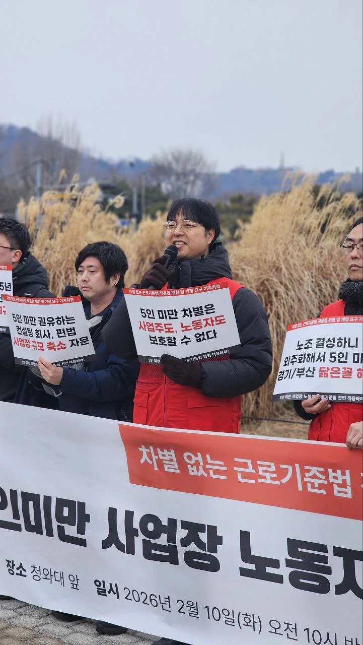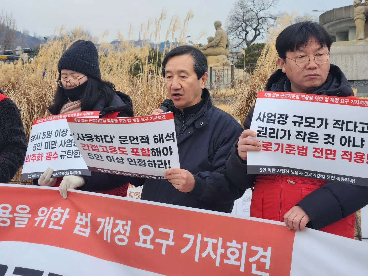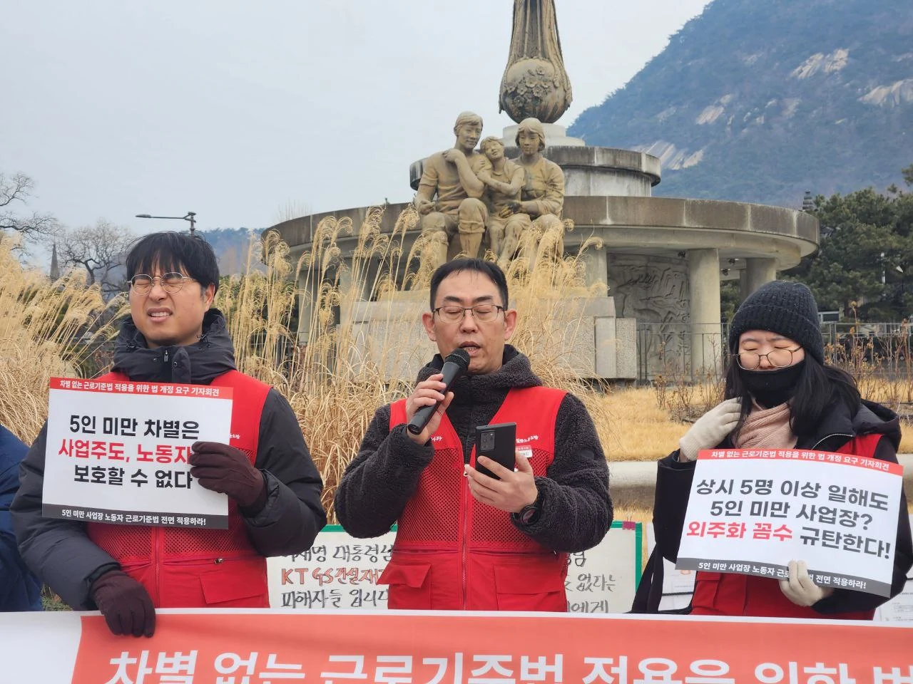 이재명 정부는 2027년까지 근로기준법 차별 없이 모든 노동자 전면 적용을 위해 법 개정을 국정과제에 넣었다. 하지만 구체적인 로드맵도 없고 법 개정 이야기도 들리지 않는다. 그 사이 노동자들은 부당해고, 무한정 연장 근로, 연차 휴가 제외 등으로 부당한 대우를 받고 있다. 지금 당장 근기법 개정하는 길이 작은 사업장 노동자들이 노조를 할 수 있는 길이다.