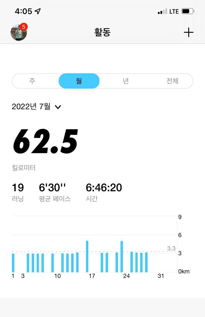 동료의 대화에서 자극을 받고 7월부터 아침 달리기를 시작했다. 주 5일 이상 무조건 아침에 뛰어 숙제처럼 미뤄두지 않겠다고 스스로 약속했다. 평소 달리던 거리보다 적게 달렸다. 5km 이상 달리면 하루가 피곤할 것 같아 딱 3km 뛰자고 스스로에게 약속했다. 다행히 1주일에 5일 이상 뛰어도 별로 피곤하지 않았다. 몸에 큰 변화가 온건 아니지만 하루가 상쾌하고 자신감도 붙었다. 더 이상 미룰 숙제도 없고 아침 달리기를 해냈다는 성취감을 얻었다.