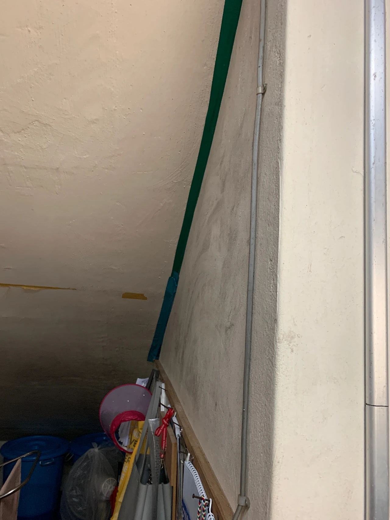 또한 여전히 계단 밑에 휴게실이 존재했다. 학생들이 계단을 올라갈 때마다 소음으로 편안하게 쉴 수 없었다. 그뿐만 아니라 곰팡이가 자욱하고 천장에서 부식되어 모레가 흘러 테이프로 임시방편 해둔 현실이다.
