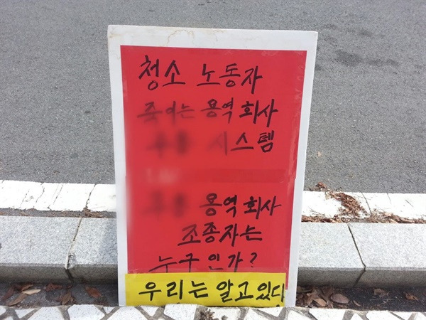 "지난 6년간 문제 없이 지냈던 업체도 용역 업체라는 사실 하나만으로 한계가 있다는 걸 이번에 알았습니다. 학교 측의 달콤한 유혹에 자본을 움직이는 용역 사장이 흔들릴 수밖에 없는 건 현실이죠. 이번에는 절대 용역을 통한 간접고용 안 됩니다. 직고용 쟁취해서 학교와 용역업체가 청소노동자를 함부로 대하는 일 없도록 해야 합니다." - 민주노총 신라대지회 조합원