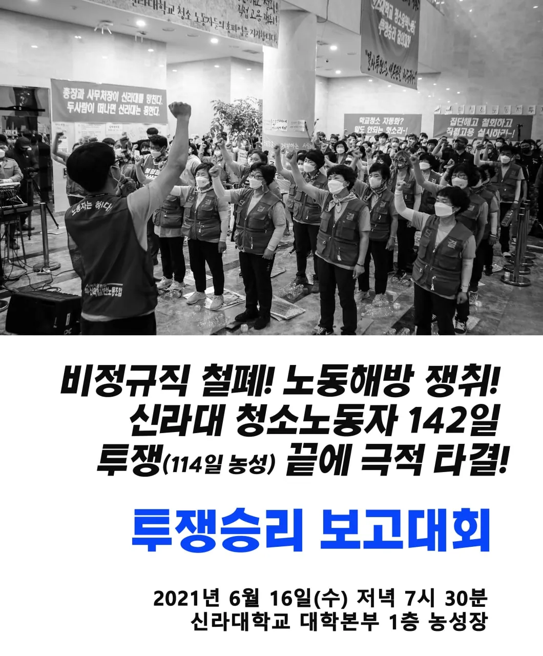 신라대 청소노동자 투쟁 142일(농성 114일) 만에 집단해고 철회와 직접고용 쟁취를 이뤄냈습니다!