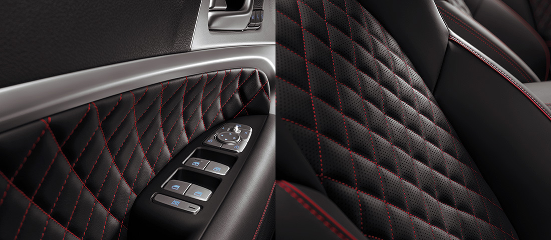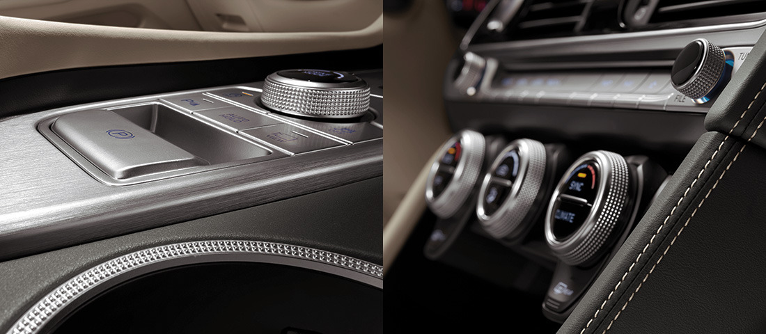 인테리어는 기존 현대나 제네시스 차량과 비교하면 한 단계 발전한 모양새다. 일단 소재 자체가 확연히 차이 난다. 플라스틱으로 된 부분이 가죽이나 금속으로 된 부분보다 오히려 더 적을 만큼 고급스러운 소재들로 곳곳의 표면들을 잘 감쌌고, 한눈에 보기에도 내장재 수준은 동급의 다른 차들에 비교해도 밀리지 않는다.
