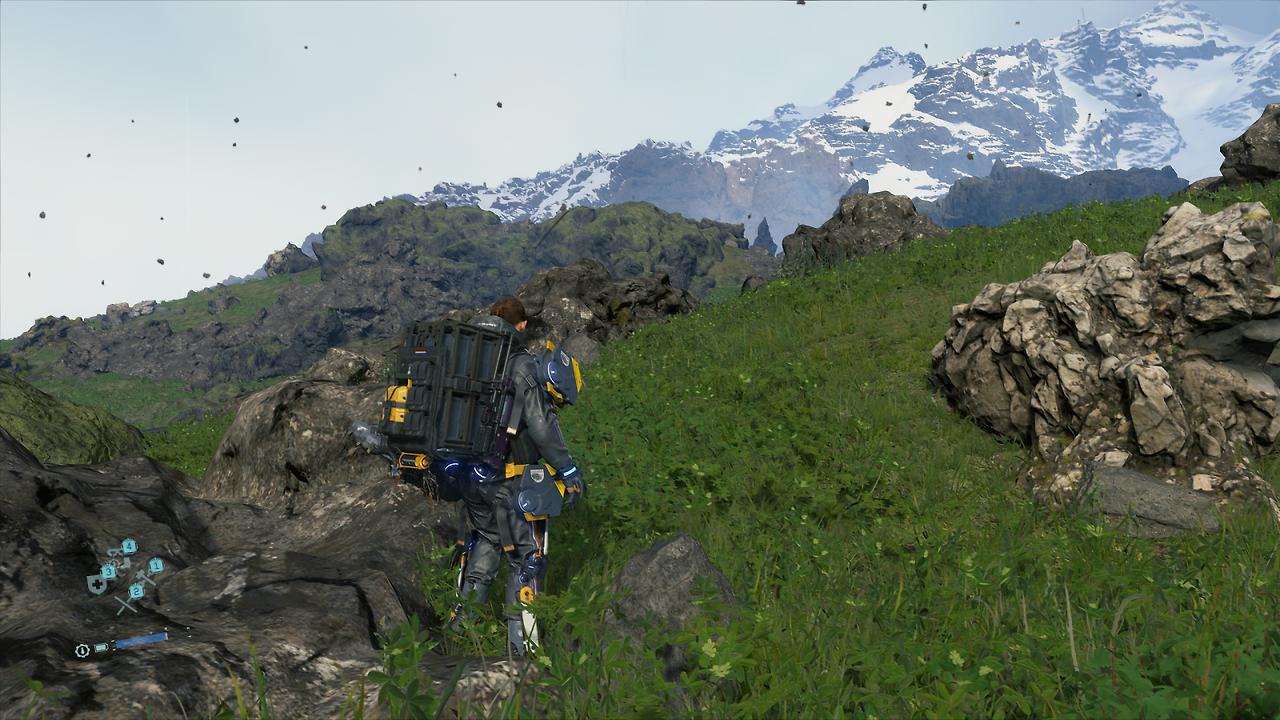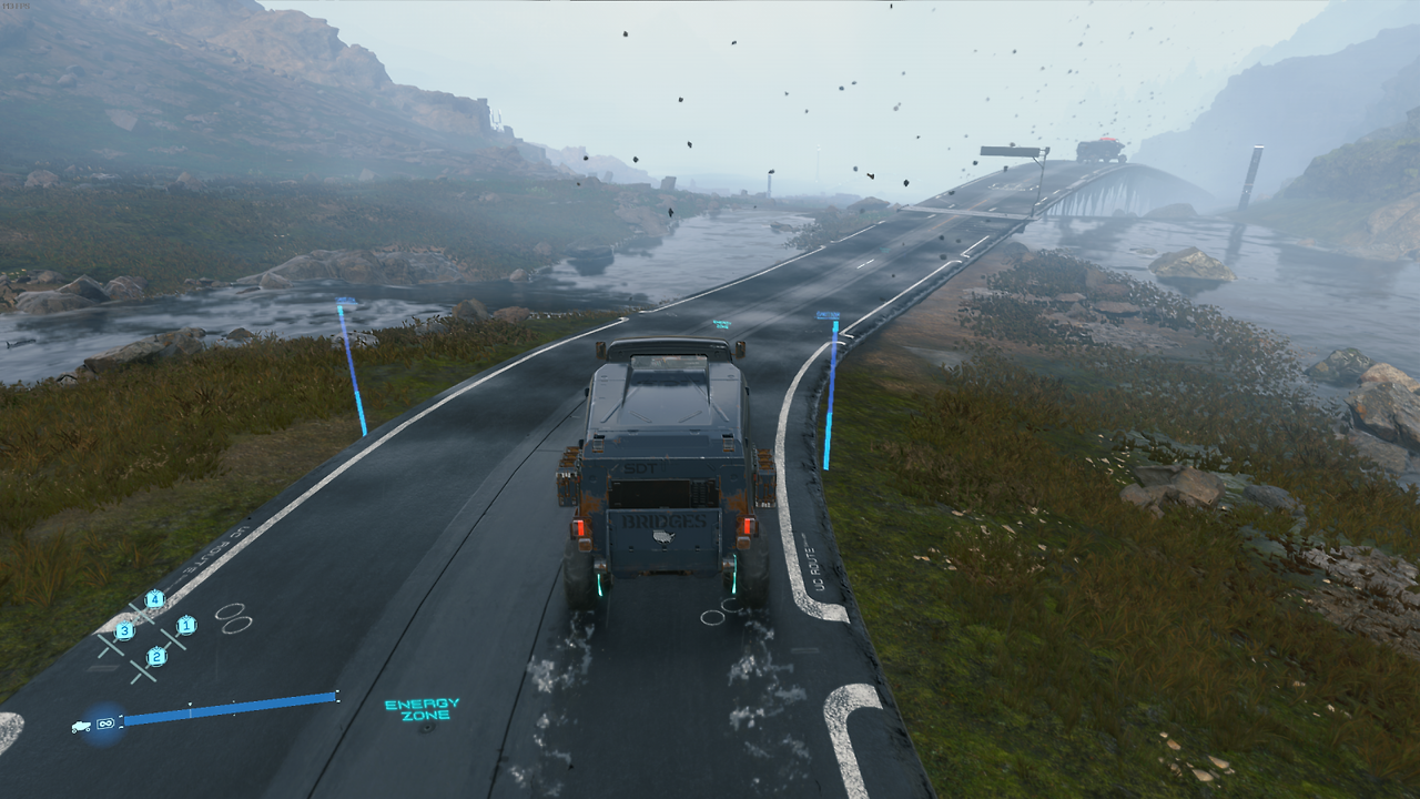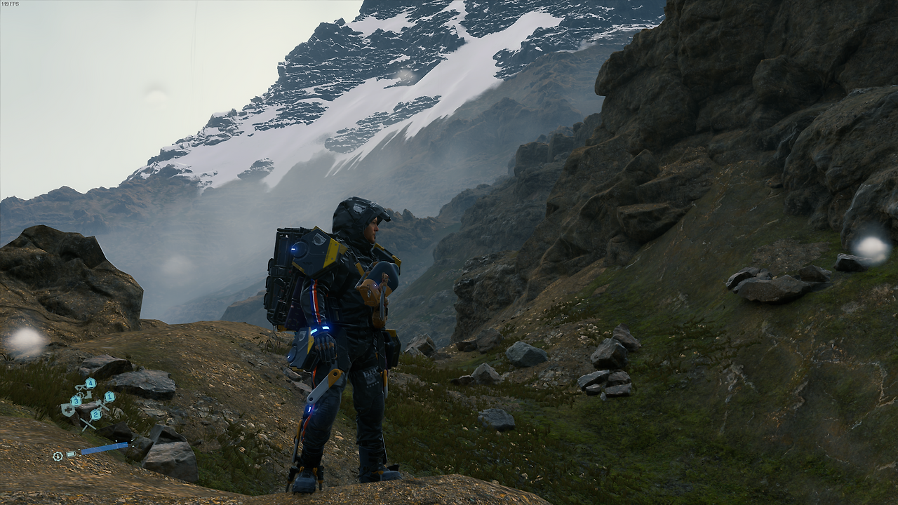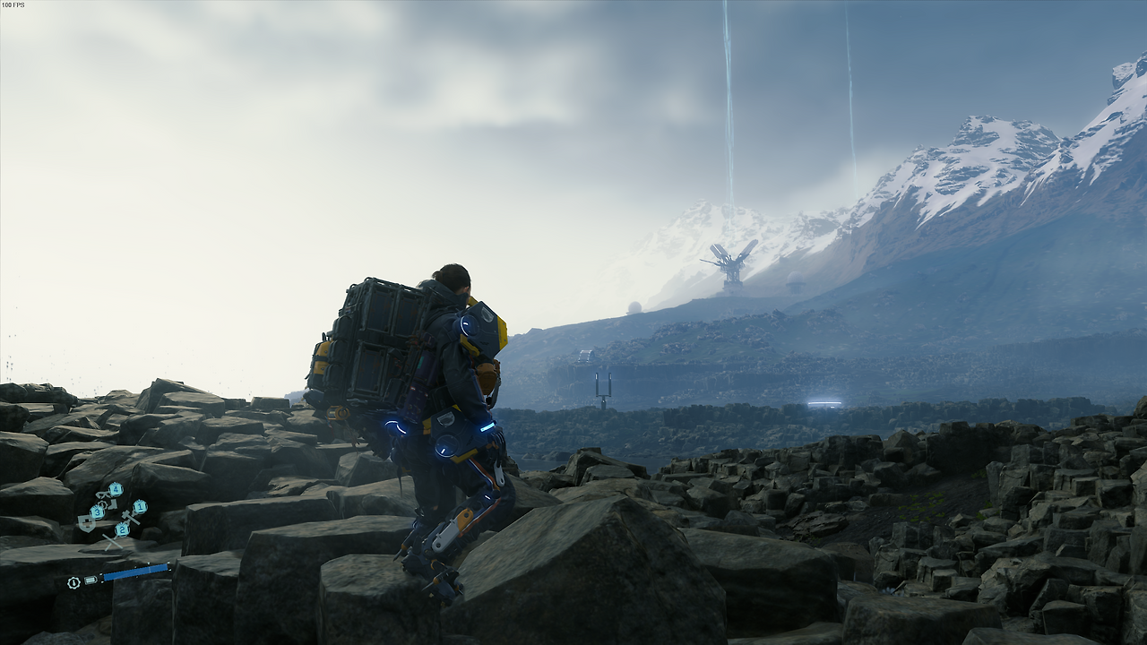 그와 함께, 코지마 히데오가 '소셜 스트랜드 시스템'이라고 언급한 독특한 온라인 시스템은 한층 더한 감동을 안겨줍니다. 플레이 자체는 고독하지만, 내가 플레이 도중 건설한 시설물이나 제작한 장비는 온라인으로 공유되고, 그것들을 잘 써먹었다면 상대방이 '좋아요'를 보내옵니다. 마찬가지로 다른 사람들의 시설물이나 장비 또한 이용하고 좋아요를 보낼 수 있습니다. 배달하다가 거대한 절벽이나 넓은 강을 멀리 돌아가야 하나 싶었을 때 발견한 다른 사람들의 사다리나 앵커, 화물이 손상 직전일 때 발견한 쉼터 등은 감동스럽게 다가왔고 저도 플레이하면서 단순히 그때그때 제가 쓰기 좋은 장소에 시설물을 건설하기보다는, 어떤 장소에 건설하는 게 모두에게 편할까 고민하게 되더라고요.