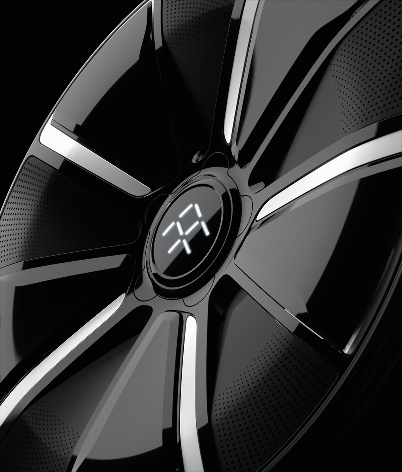 휠 디자인도 공기역학적으로 설계되어 틈새나 굴곡 등이 거의 보이지 않으며 단순한 형태를 띠고 있다. 지나치게 심심해 보이는 것을 피하기 위한 최소한의 조형만이 들어가 있는 모습이다. 중앙의 패러데이 로고는 차가 달릴 때 돌아가지 않고 똑바로 서 있도록 디자인되었다. 휠의 형태는 차의 주행 상태에 따라 능동적으로 바뀐다.