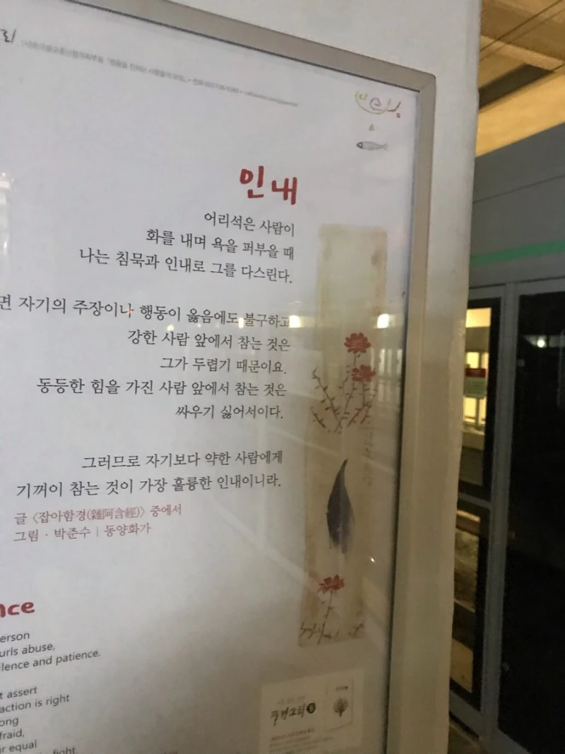 벽에 붙어있는 포스터의 글씨가 눈에 들어왔다. 이제부터 시작될 험한여정의 서막이라도 된단 말인가? 지하철 승강장을 나오자 매서운 바람이 들이닥쳤다. 칼날같은 바람은 내 얼굴을 할퀴고 지나갔다. 검은 밤하늘에 놓인 내 자신이 서글펐다. 눈앞이 캄캄해 왔다.