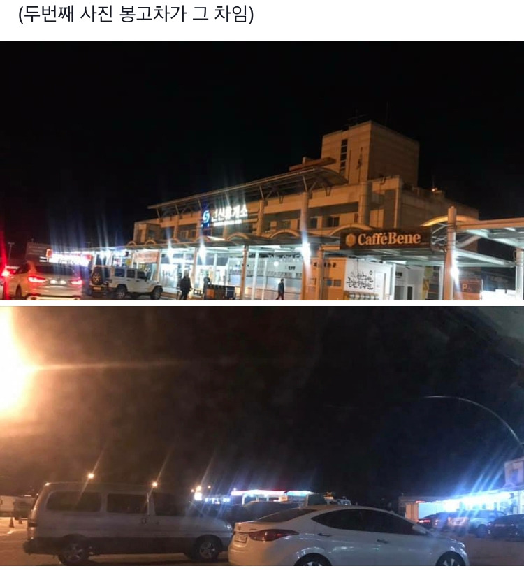 도착한 휴게소는 이미 어두워져 있었다. 차를 세우고 쓰레기를 버리러 문을 여는데 한 남자가 다가왔다.