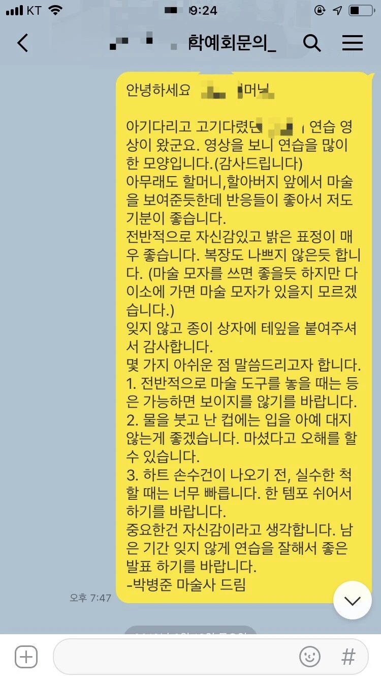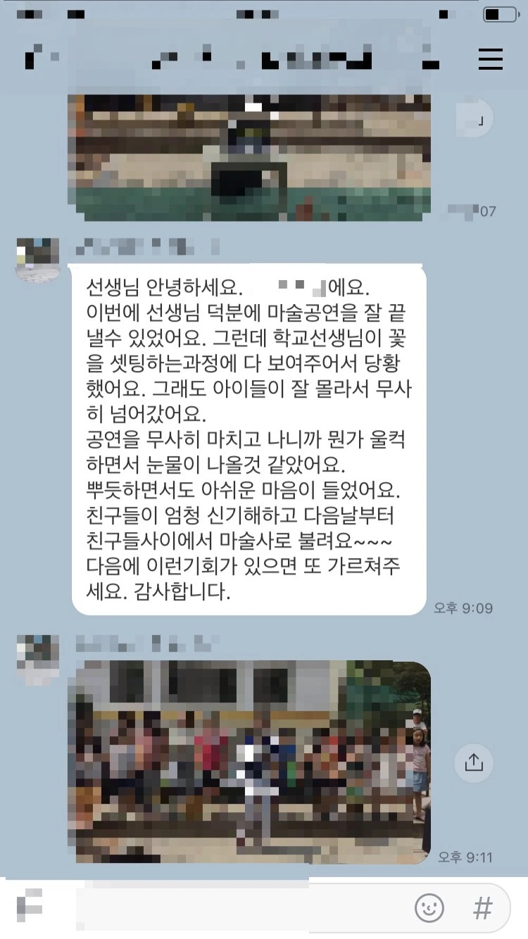 마술 수업을 좋아하던 아이, 너무나 감사할 따름이었습니다.