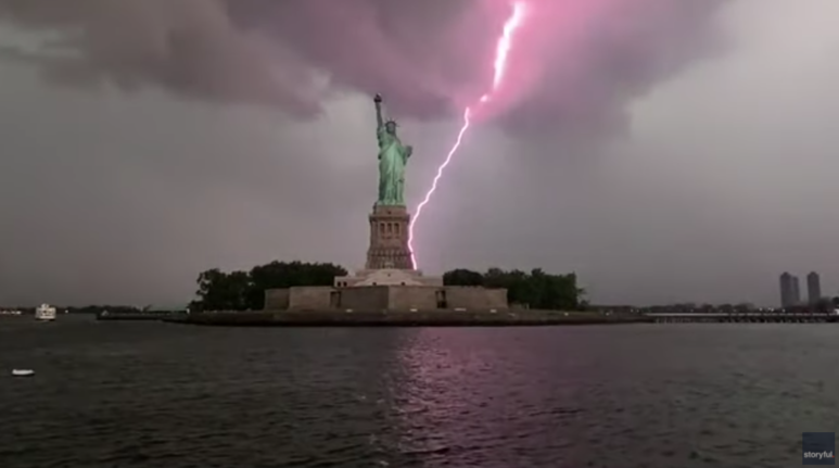 7월 22일 미국 뉴욕에서는 거대한 번개가 발생 했습니다. 번개는 자유의 여신상에 떨어졌습니다.
