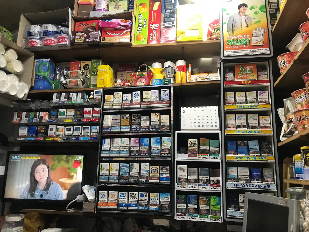 내부에는 층층이 쌓인 라면과 과자 한쪽에는 담배들이 가지런히 모여 있었습니다. 아래로 오래된 모니터가 보였습니다. 몇평이 안되어 보이는 작은 곳에 있을건 다 있어 보였습니다. 가지런히 놓여진 모습은 사장님의 깔끔한 성격을 나타내 주는 것 같습니다. 어릴 적 시골에 있던 구멍가게를 구판장이라고 불렀는데요. 늘 그곳에 가면 할머니가 누워 있다가 맞이해 주었던 기억이 납니다. 구판장을 연상하게 하기도 합니다.