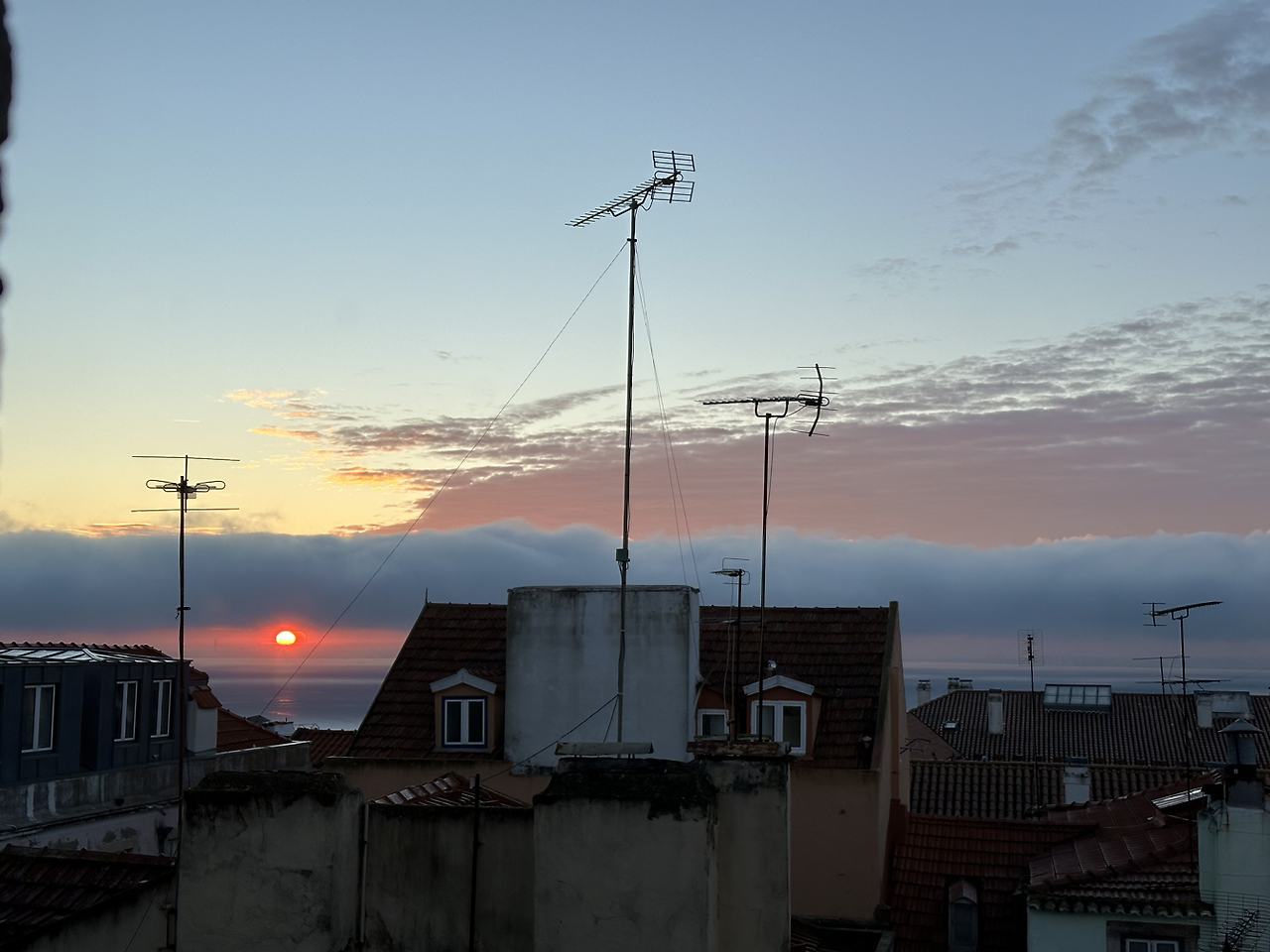 고민하다 고개를 딱 들었는데, 리스본 숙소 밖으로 펼쳐진 진짜 만화같은 창밖풍경이 눈에 들어왔다.