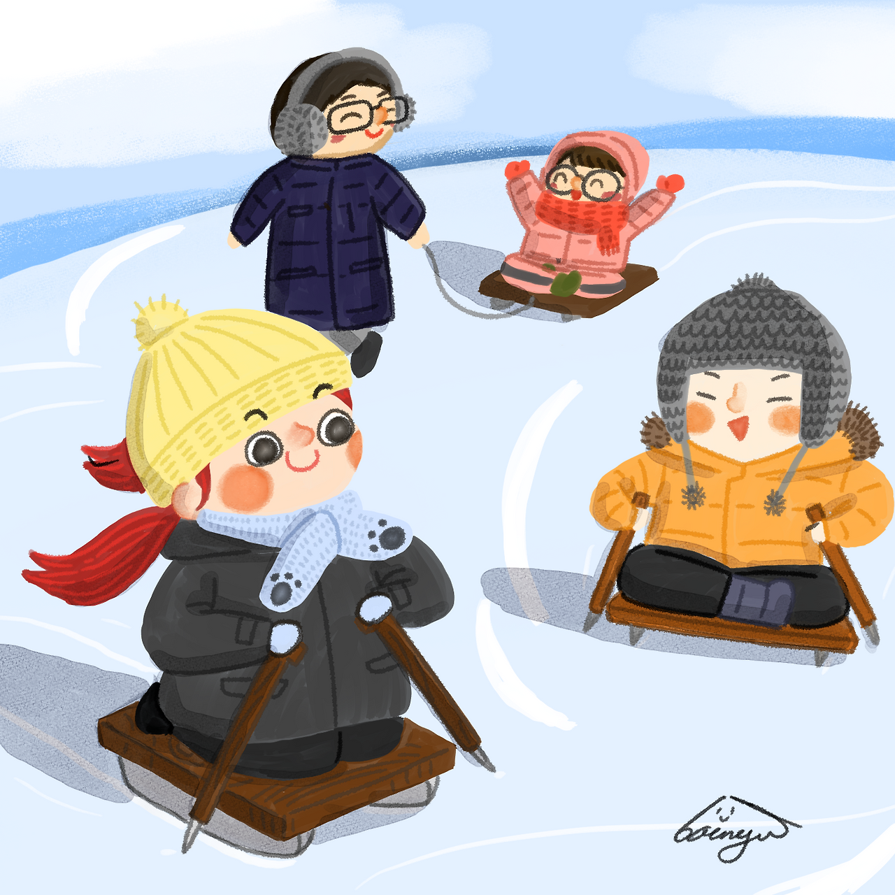 직접 얼음을 짚어가며 앞으로 나아가는 것도 좋지만은, 얼음썰매의 앞에 줄을 매달아서 할아버지가 열심히 끌어주면은 썰매 위에 탄 나는 그 차가운 공기를 느끼며 앞으로 나아가는 즐거움을 느꼈다. 외할아버지랑 함께했던 시간이 모두 즐겁고 신났다. 할아버지같은 다정한 사람이 있어서 나의 어린 시절은 꽤 행복했던 것 같다. 그 순간을 떠올리며. 5일차 완성!