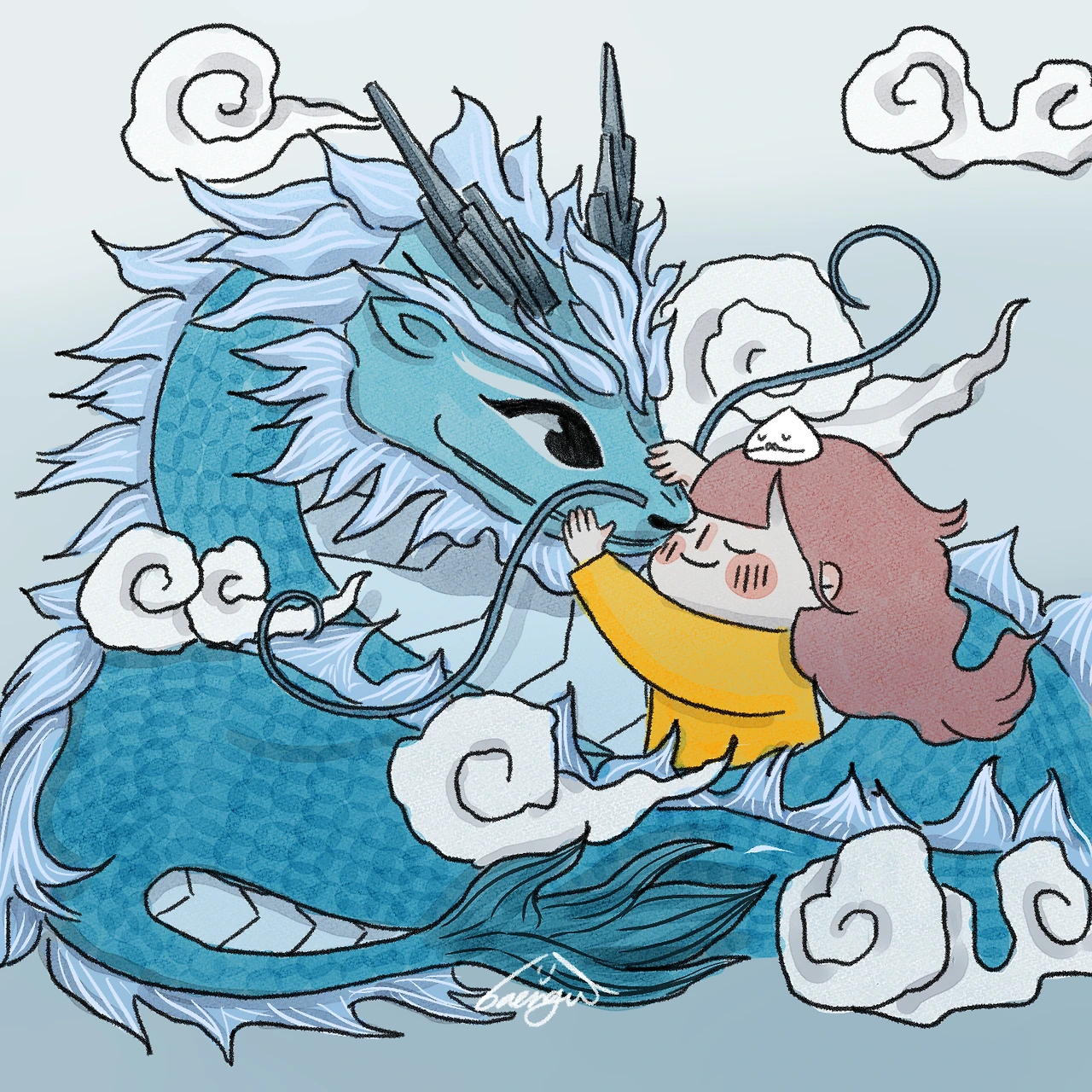 챌린지의 마지막 주제는 용입니다-! 올해는 청룡의 해라면서요? 그래서 청룡을 한번 그려봤습니다. 근데 이제 저를 품어주는. 작년이 조금 다사다난의 한해였거든요. 든든한 푸른 용에 잠깐 기대어 올해를 보드랍게 보내보고 싶은 마음에 이런 그림을 그려보게 되었답니다. 처음 그릴 땐 배치가 전혀 생각나지 않았는데