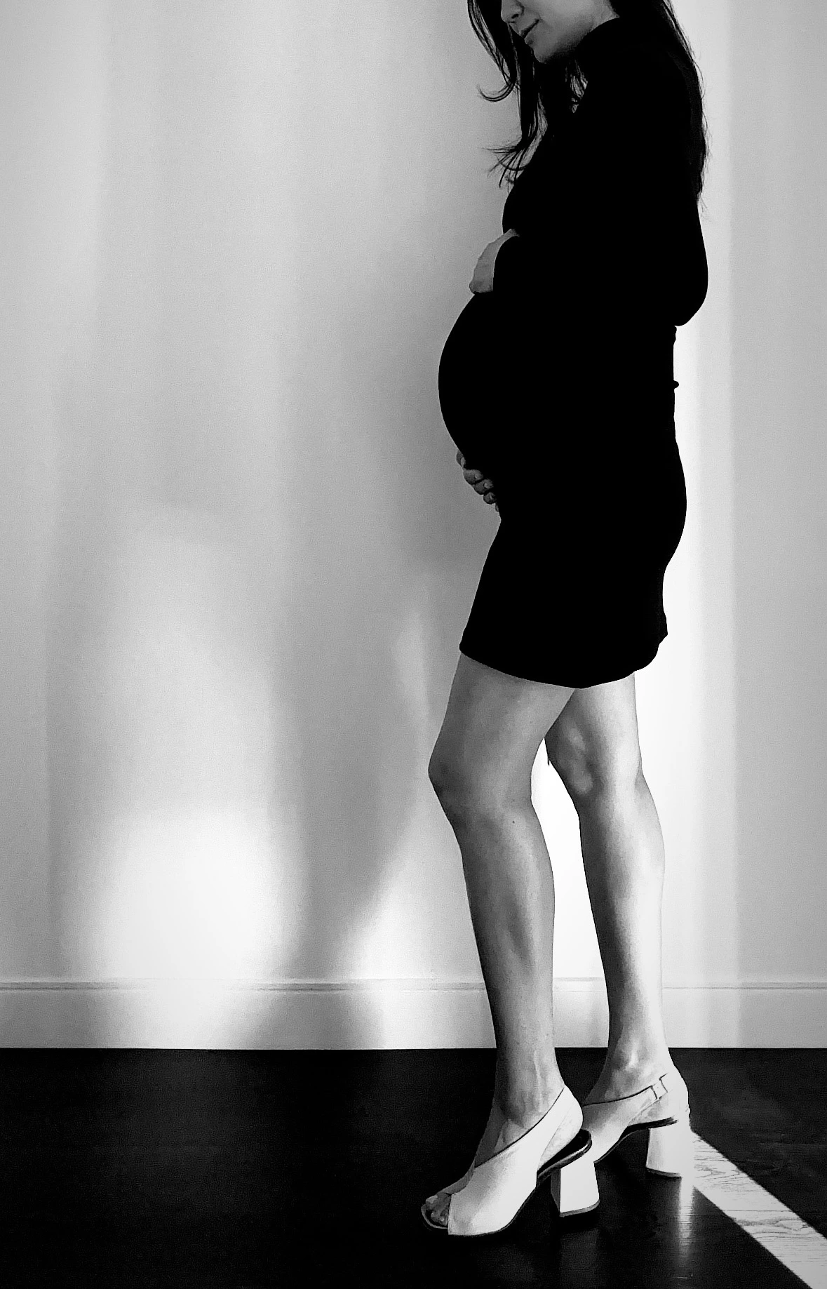 벽면이 깨끗한 방 한쪽을 치우고 핸드폰을 삼각대에 올려 타이머를 설정하고, 얼굴에 대충 이것저것 찍어바르고 원피스 입고 집에 있던 구두 신고 36주 임산부 셀프 홈 만삭사진을 찍어보았다.
