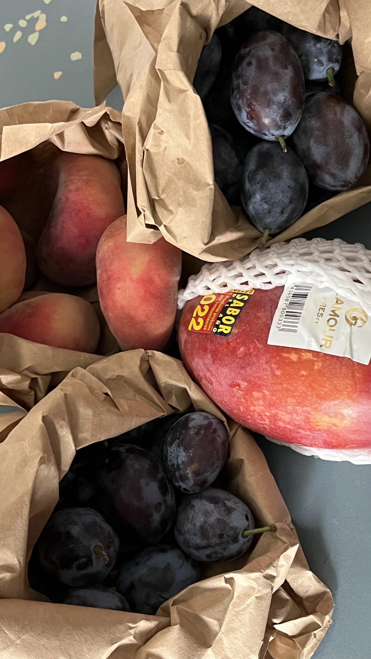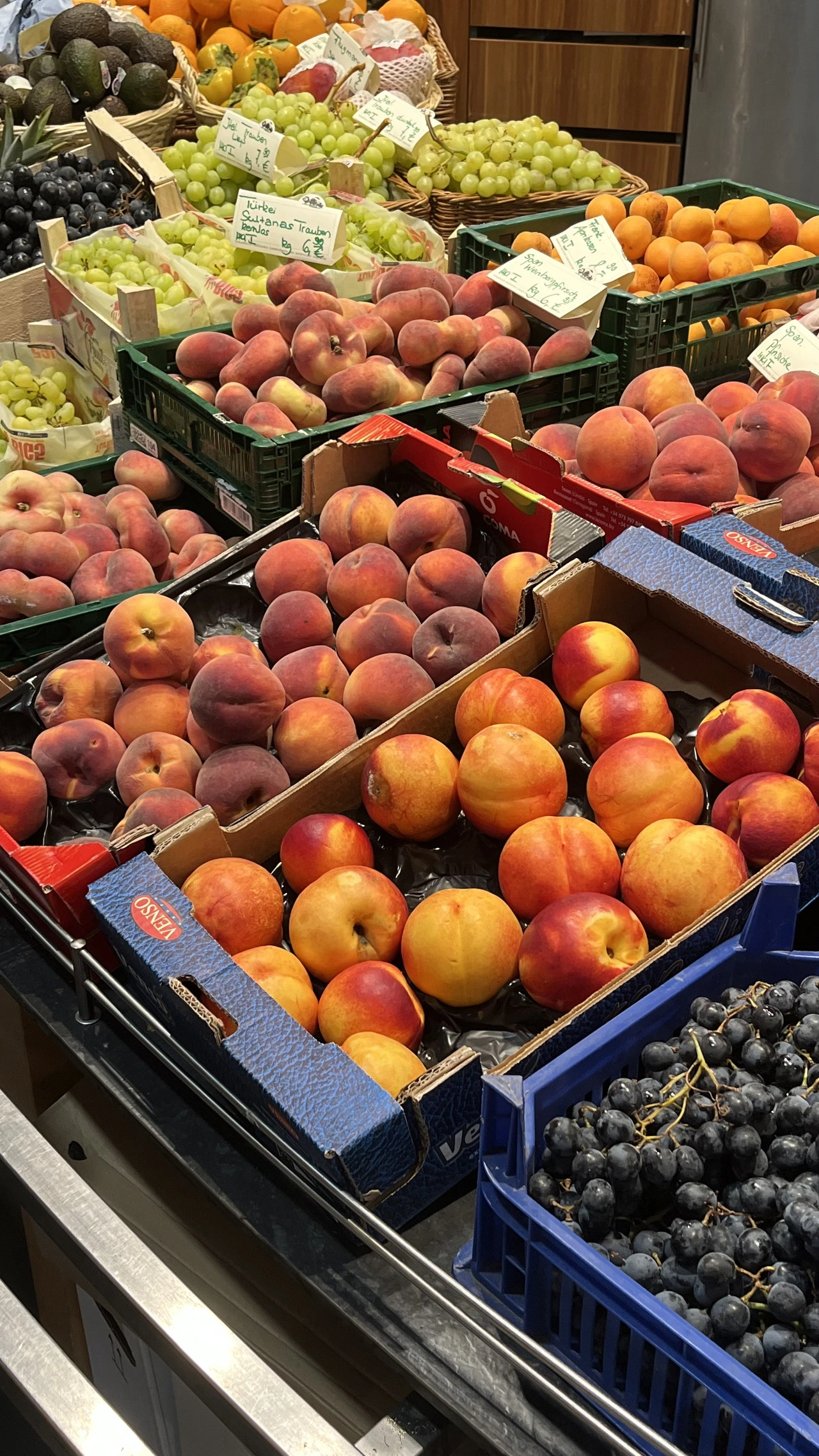 유럽에 오면 납작 복숭아를 꼭 먹어보고 싶었는데, 이 가게에 납작 복숭아가 팔아서 많이 샀고, 이 외에도 망고와 자두(?)를 구매했다.