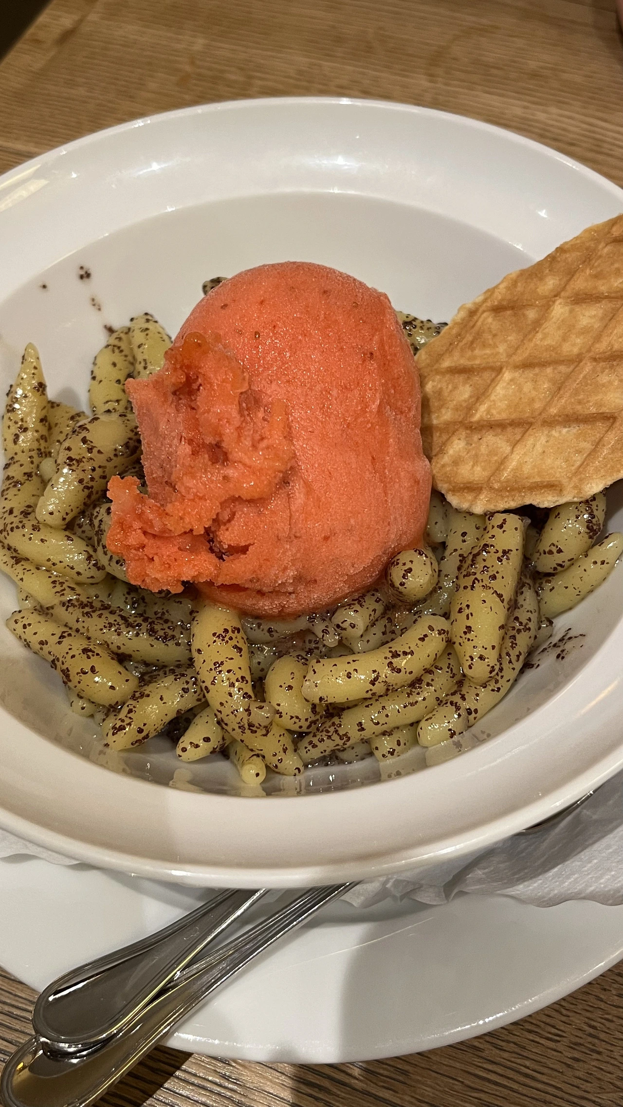 게다가 이 디저트는 떡처럼 쫄깃한데, 차가웠고, 그 위에 아이스크림까지 얹어 먹으니 정말 정체를 알 수 없을(?) 맛이었다.
