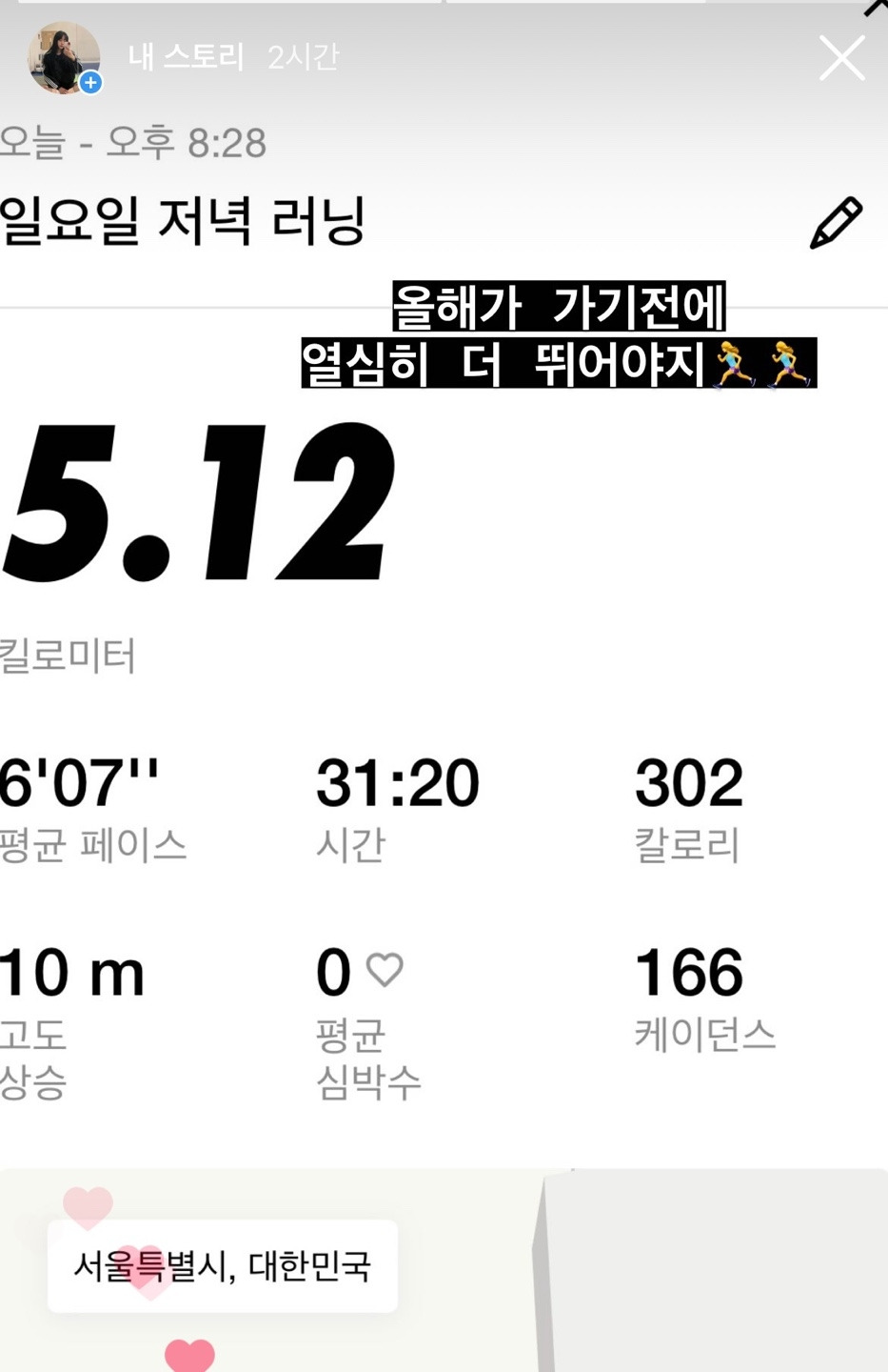 이 글을 쓰고 있는 오늘도 운동 스토리로 5km 러닝 관련 내용을 업로드했다.