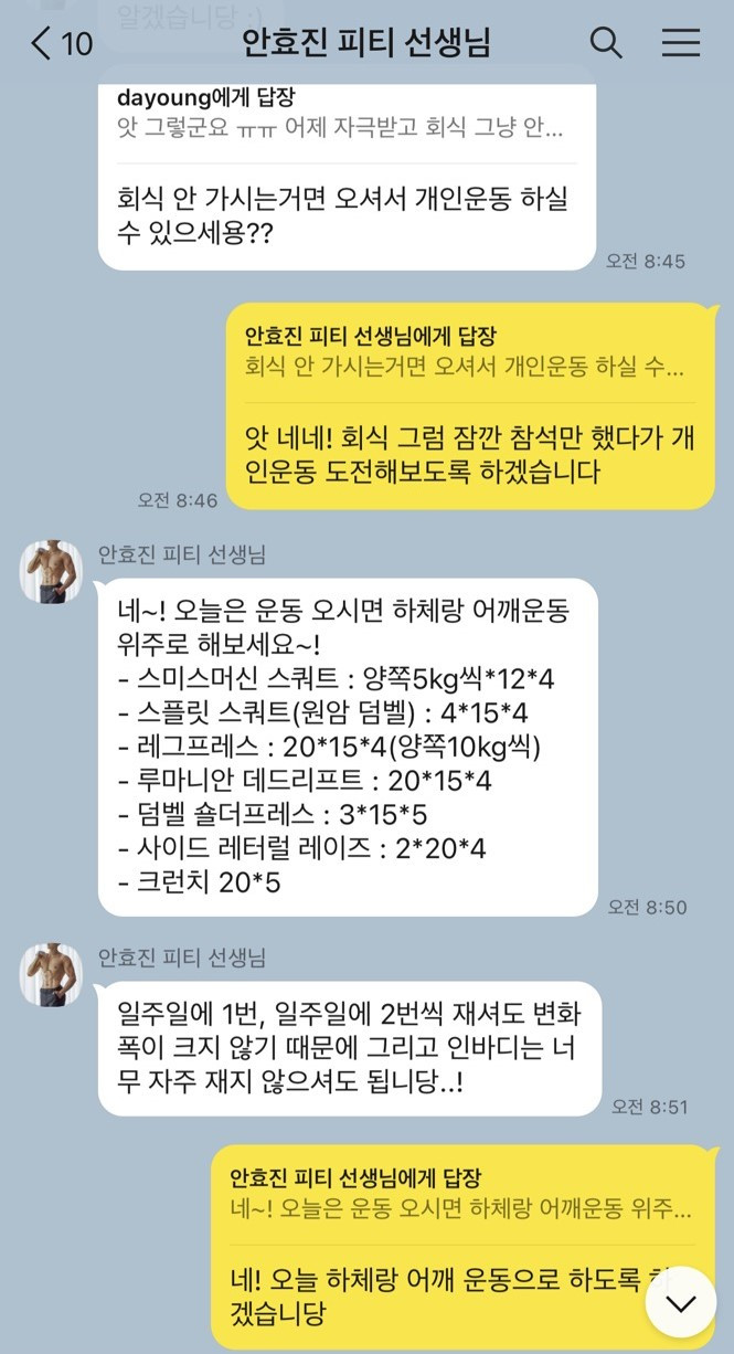 이전 글에서 말했듯이 300만 원 정도를 써서 매일 나의 식단을 체크해 줄 피티선생님을 고용했지만, 피티선생님은 너무나 '당연하게도' 운동 이야기만 했다. 피티 수업에서 알려주신 운동 정보를 정리해 주시고, 개인 운동에 오라고 독려해 주시는 것이 전부였다.