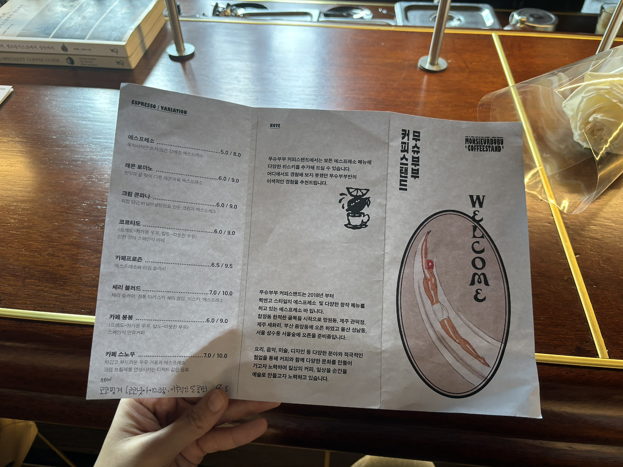 막상 우리 회사 근처 에스프레소 메뉴들은 내가 열심히 탐닉하고 먹어봤지만, 무슈부부의 에스프레소는 막상 이 날이 처음이었다. 에스프레소에 입문할 때쯤에는 무슈부부 위치가 나에게 물리적으로 멀어진 상태라 그랬던 것 같다. 끝나지 않는 무더위의 여름 끝자락에 찾아간 정동길에서 받아 든 에스프레소 메뉴 ‘프로즌’은 정말 감동 그 이상이었다. 나는 분명 이 글을 시작할 때 ‘내 것이 아님에도 내가 너무 자랑스럽게 느끼는’ 그런 마음에 대해서 쓰려고 글을 시작했다. 그렇지만 어떤 자랑스러움인지 설명을 하려다 보니 그 대상의 훌륭함에 대해 기술할 수밖에 없다.