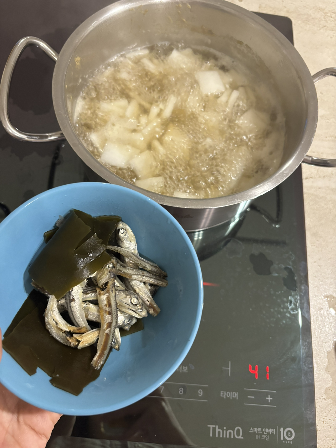 평소 같으면 두 마리나 세 마리 넣었을 멸치를