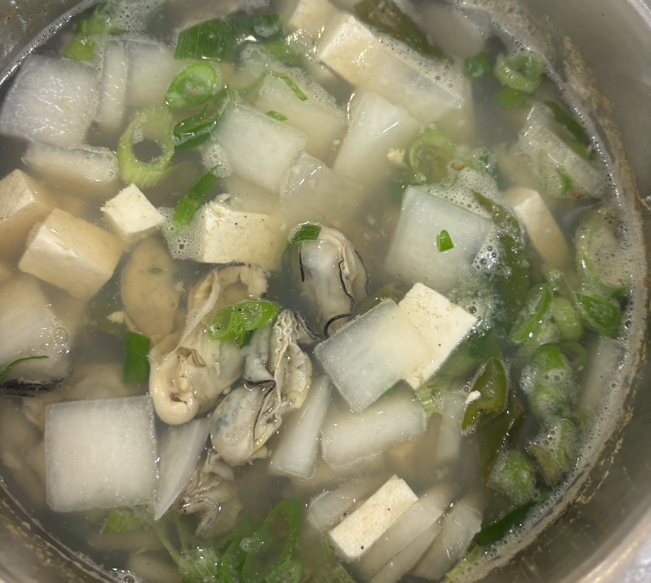 마지막에 굴과 두부를 휘리릭 넣어주고