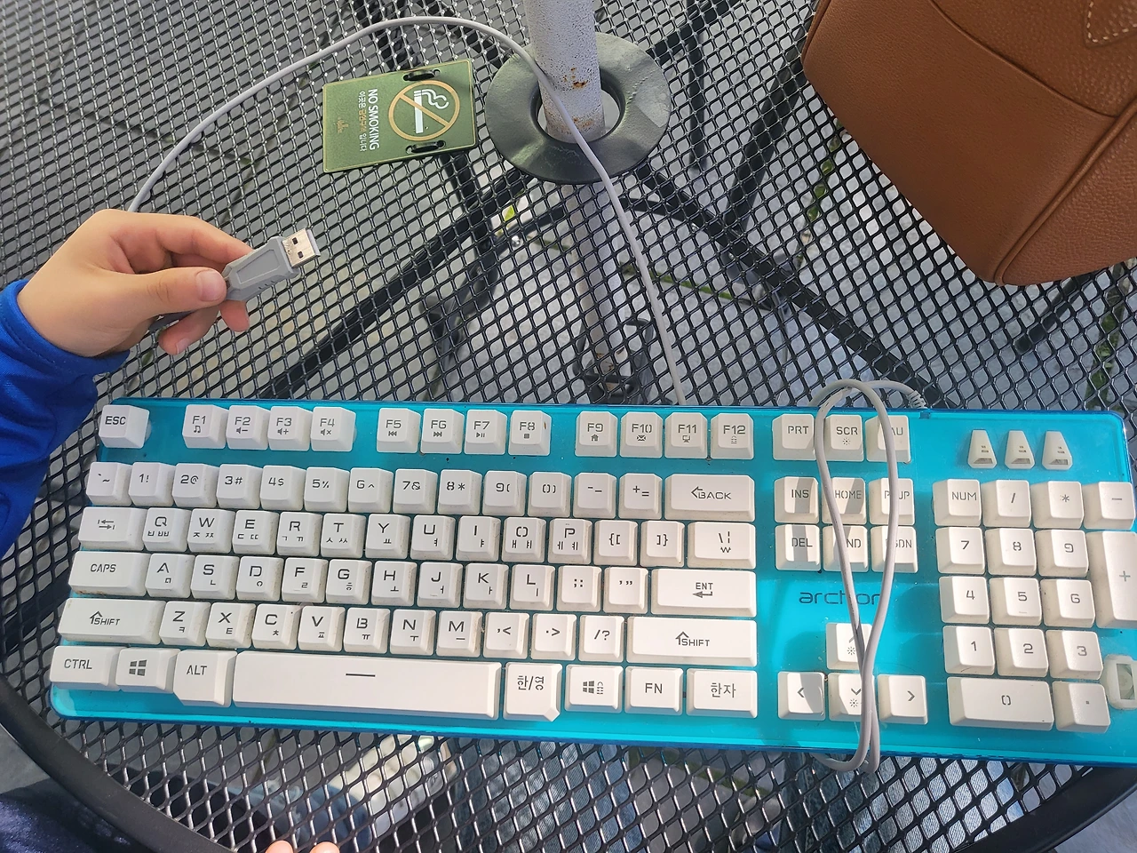 7살 데리고 지하철 갈아타고 오느라 기진맥진해진 나는 갤러리아 앞에서 무심코 키보드를 꺼내봤다.