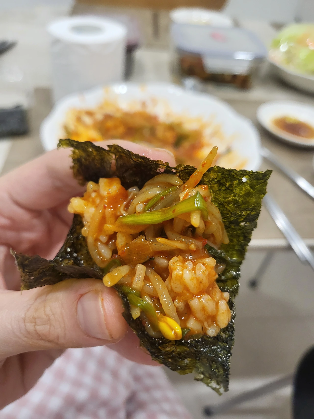 정신을 차려보니 아구찜을 혼자 두 접시 다먹고 마지막엔 밥까지 비벼서 김싸먹고 있었다...
