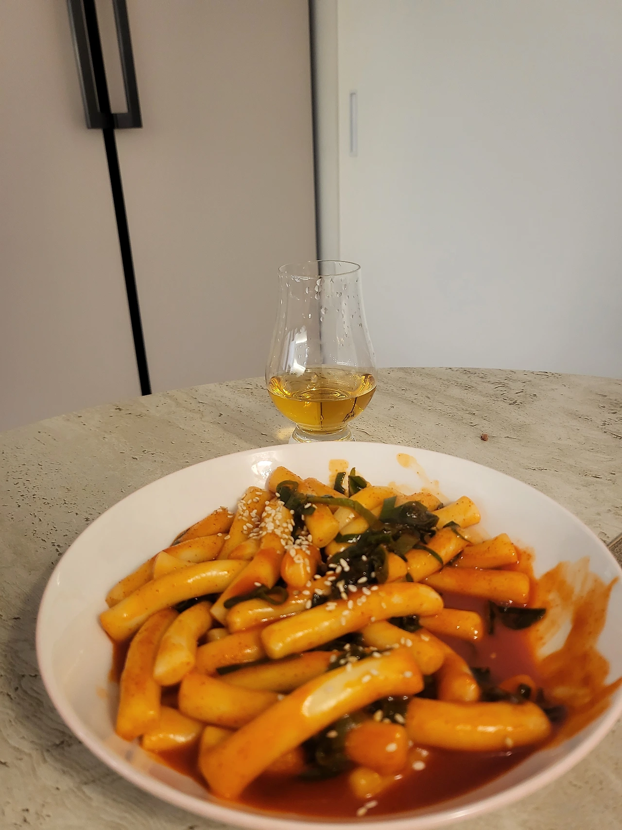 잘해보려고 일 열심히 하던 직장인, 본인 실수에 자괴감 느껴... 퇴근 후 분노의 칼질로 파를 가지런히 썰어서 떡볶이에 위스키로 헛헛한 마음을 달래 본다.
