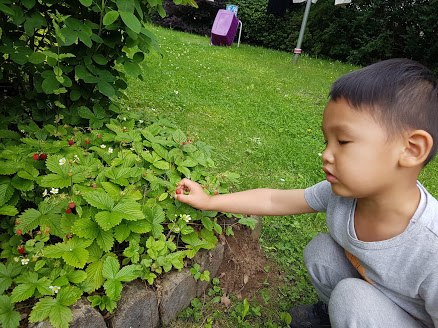 이블린 아주머니의 정원 구석에는 작은 산딸기 밭이 있다. 향이 짙고 먹음직한 딸기를 마음껏 따먹을 수 있도록 허락해주셨다. 아이들에게 많은 사랑을 주는 이웃이 있음이 감사하다.