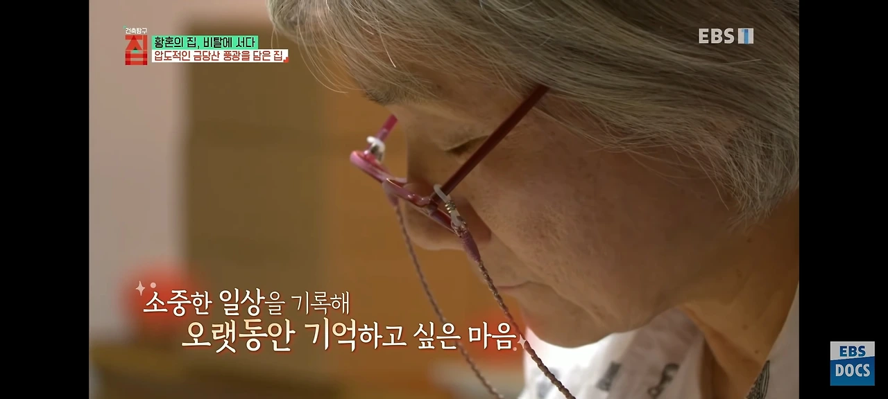 즐겨 보는 TV 프로가 많지 않지만 그중에 좋아하는 프로 중 하나가 EBS '건축탐구 집'이다. 단순히 집을 보여주는 것뿐 아니라 그 집에 사는 사람들의 이야기가 있어 좋아하는데, 작년 여름쯤 '황혼의 집, 비탈에 서다'라는 제목으로 소개된 이재수 할머니와, 박성희·주덕영 부부의 집과 그들의 이야기가 꽤 오래 인상적으로 남았다.