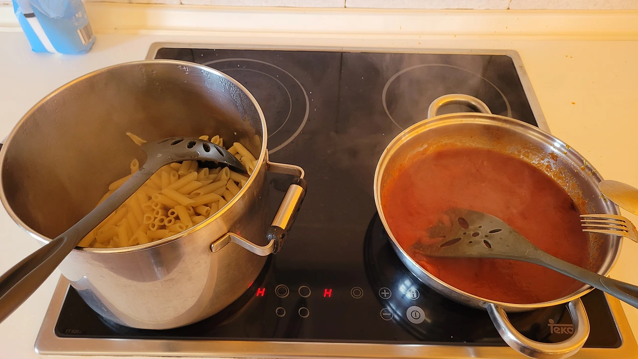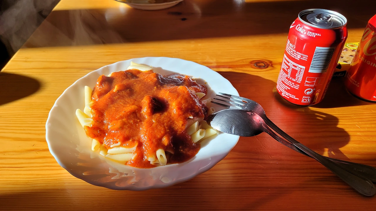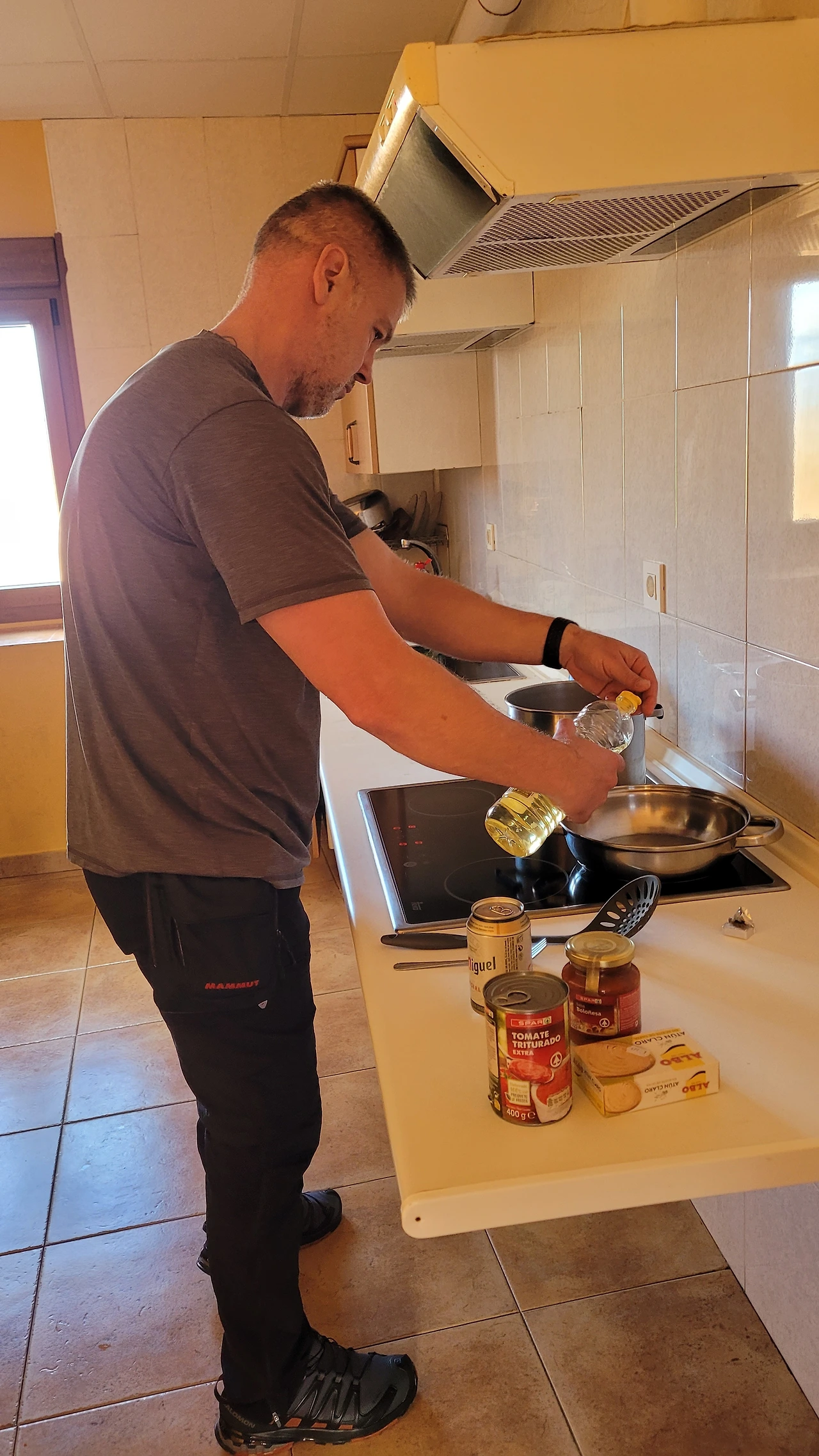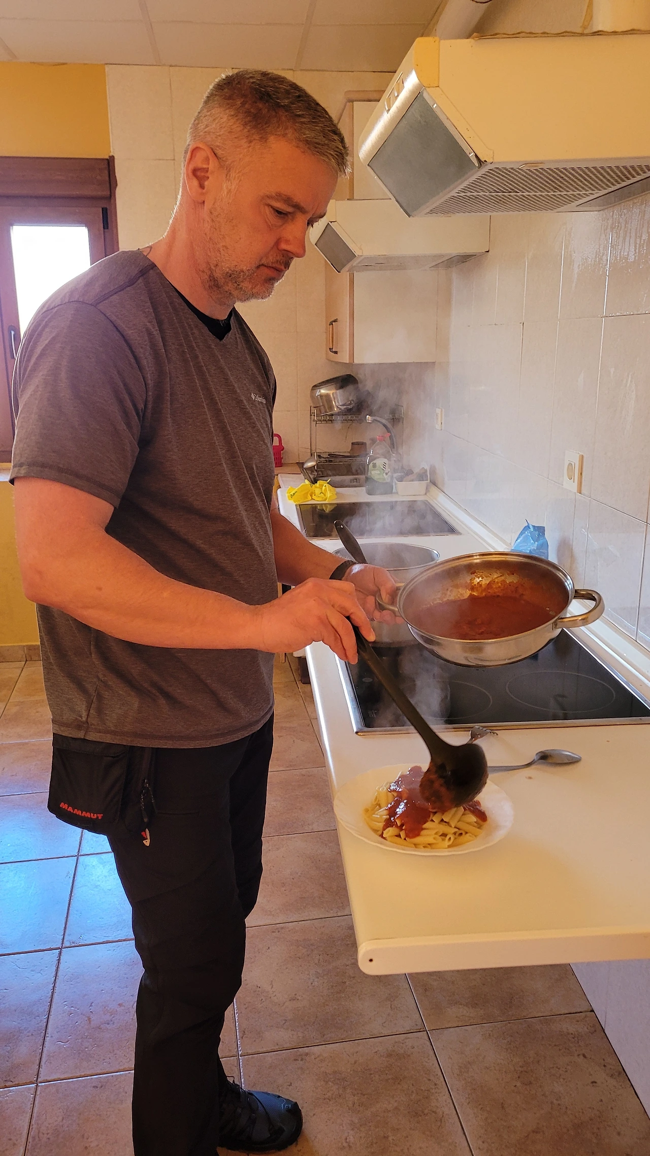 오늘 도착한 마을은 숙소와 슈퍼만 있고 식당은 없어 그가 직접 파스타를 해줬다. 난 면보나는 밥을 선호해서 평소 파스타는 즐기지 않는데 그의 요리솜씨가 제법이다. 엊그제 까리온에서 '요리는 자신 없다'며 냉동피자를 사 먹었던 건 순전히 거짓이었다.