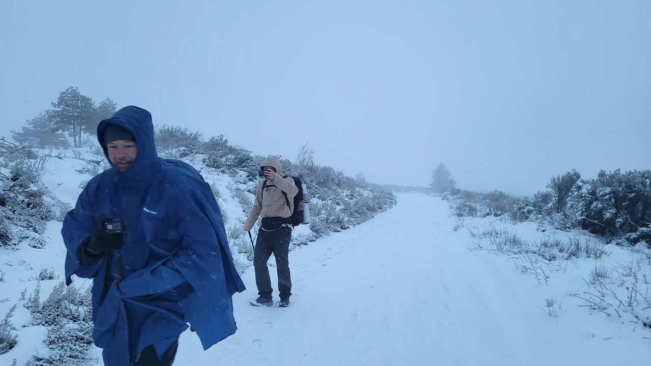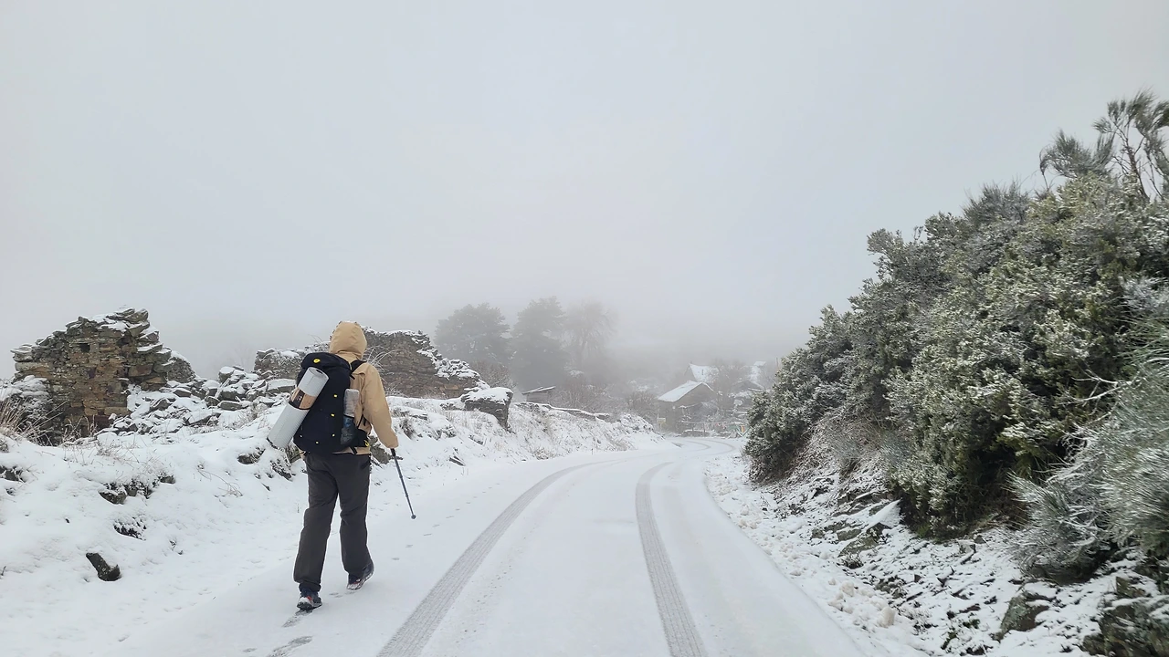 커피를 마시는 사이에 날이 밝아 랜턴 없이 길을 나설 수 있었다. 감사의 인사를 거듭 남기며 눈 덮인 길을 걷는데 좀 전 알베르게에서 인사했던 중국 순례자가 앞서 가고 있었다. 그는 걸음이 빠르지 않아 곧 우리 뒤로 처져서 걷게 되었다.