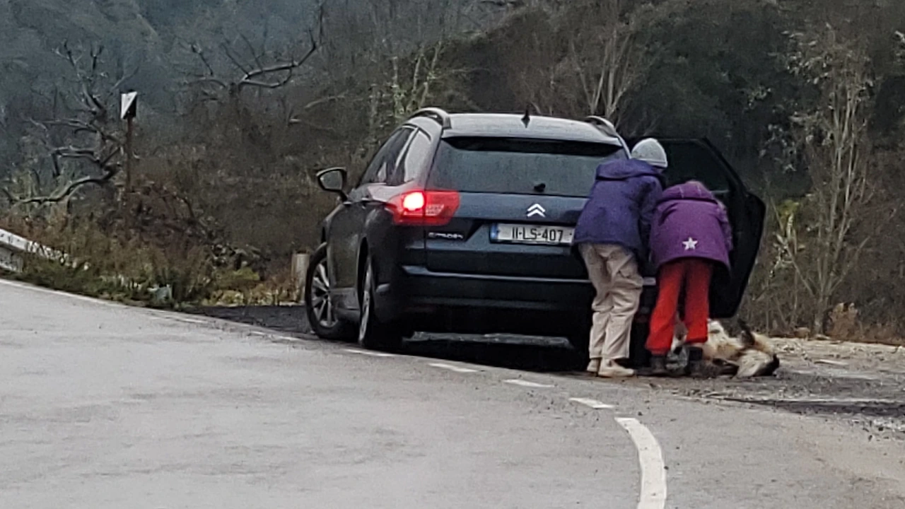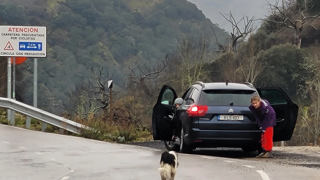 그렇게 다음 마을(약 8km)까지 그분은 우리 앞에 있었다. 이제 어떻게 헤어져야 하나 고민하고 있는데 차 한 대가 지나갔다. 그때 도로 가에 있던 그분이 갑자기 차로 달려드는 게 아닌가.