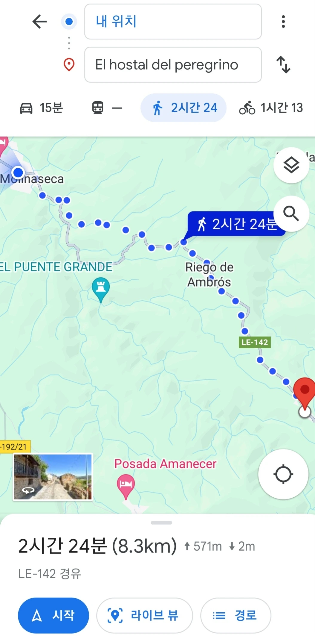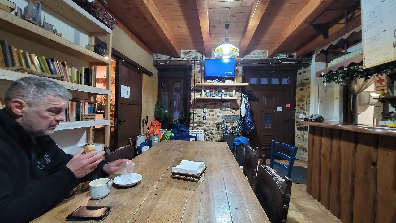 하지만 마을 입구 바르는 동절기에 문을 닫는지 장사할 생각이 없어 보였다. 어쩔 수 없이 바르 입구에 배낭을 내려놓고 물 마시며 한숨 돌리고 11km 떨어진 엘 아세보(El Acebo)를 향해 발걸음을 옮겼다. 그렇게 10미터쯤 가자 불이 켜진 집이 보였고 자연스럽게 눈이 그 집을 향했다. 인기척에 마침 밖을 내다보던 주인 할머니와 눈이 마주쳤고 곧바로 그를 바라봤다.