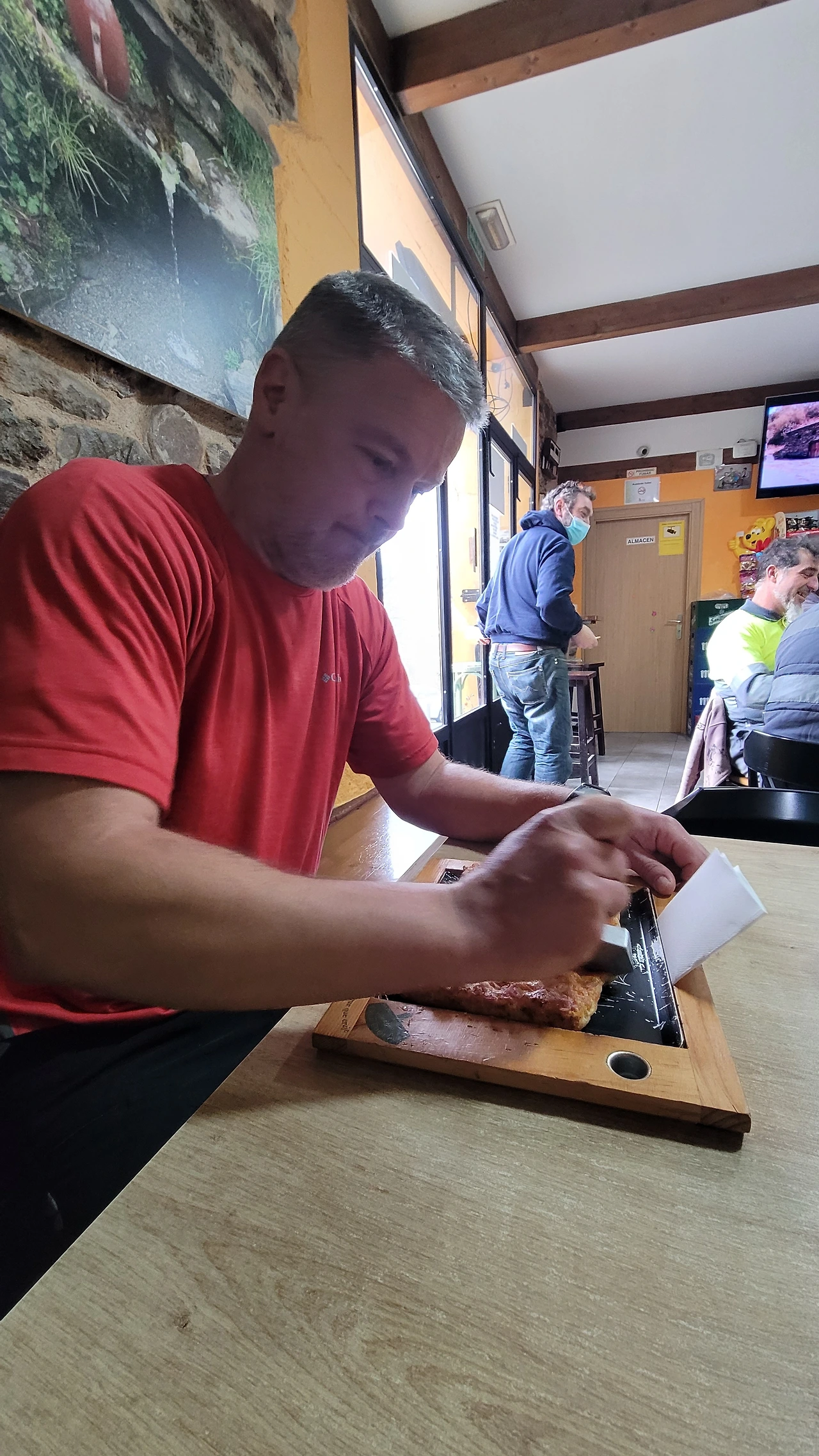 여느 숙소처럼 체크인 과정을 거치고 연세 많은 할아버지 호스피탈레로의 안내로 침실로 들어섰다. 호스피탈레로는 못 알아듣는 스페인어로 이것저것 안내를 해주시고 떠났는데 그때부터 그의 얼굴이 흙빛으로 변했다. 전 마을부터 그는 배가 많이 고프다고 했기에 난 몹시 배고픔이 안색에 드러난 것이라고 생각했다. 그가 짐 풀지 말고 먼저 점심을 먹으러 가자고 해서 얼른 밖으로 나왔다.그는 식당을 찾아가는 내내 휴대폰을 들여다보고 있었다. 아마도 메뉴 델 디아(스페인 식당의 오늘의 메뉴로 고기를 포함한 코스 요리)를 파는 식당을 검색하는 거라 생각했다.