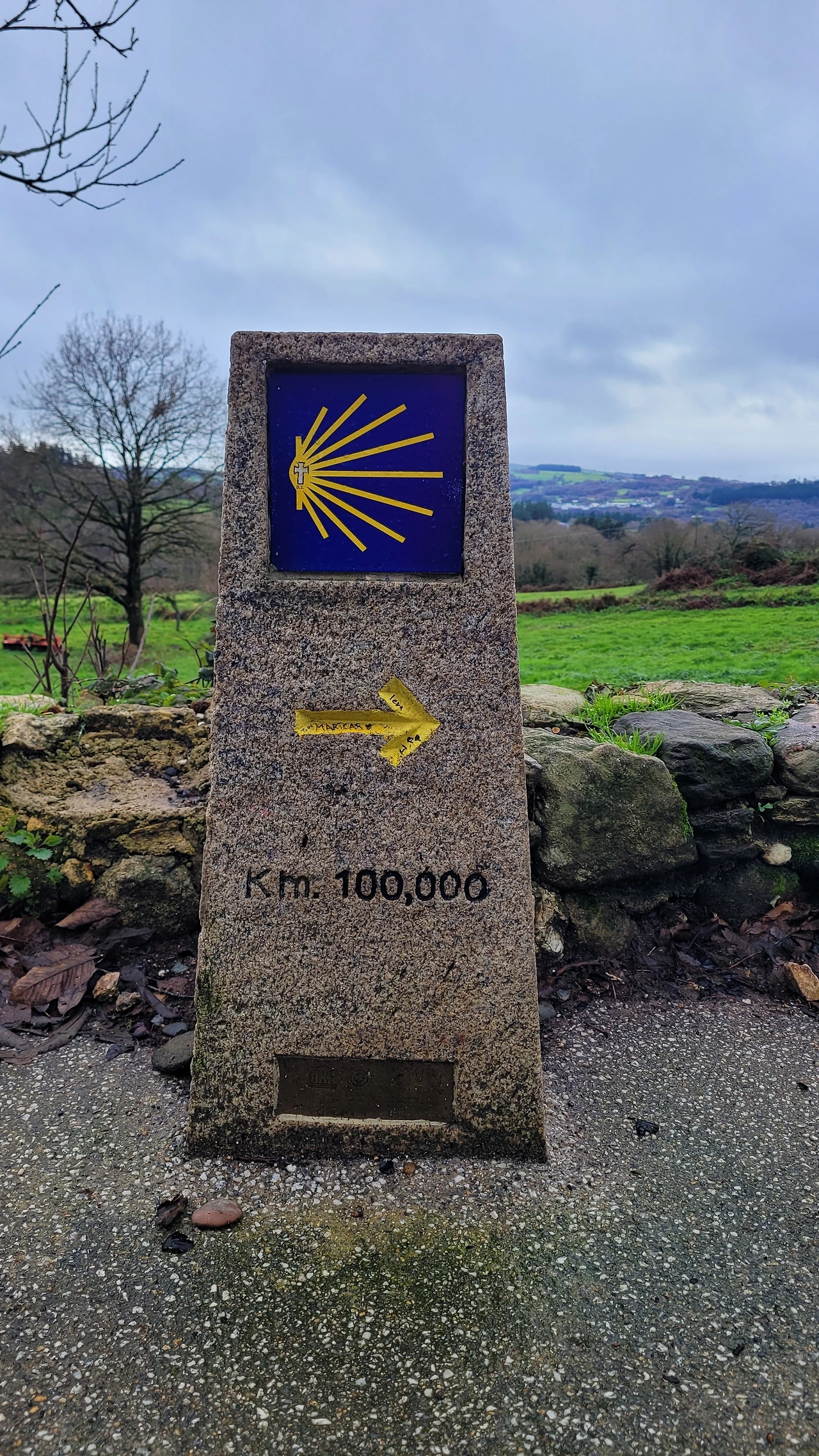 그때부터 마음이 급했다. 이렇게 가다가는 예상한 최고의 시나리오대로 연출되지 않을 거였다. 그때부터 정말 6(km/h)의 속도로 부지런히 걸었다. 우비 안에 입은 옷들에서 물이 줄줄 흘렀다. 그렇게 걷는 동안 그가 보낸 다른 메시지가 도착했다는 알림이 떴다. 하지만 바로 확인하지 않았다. 어떤 내용인지 대충 짐작이 되어서. 거의 대부분의 순례자들처럼 (산티아고까지) 100km 남았다는 표지석 앞에서 찍은 사진을 보냈으리라.