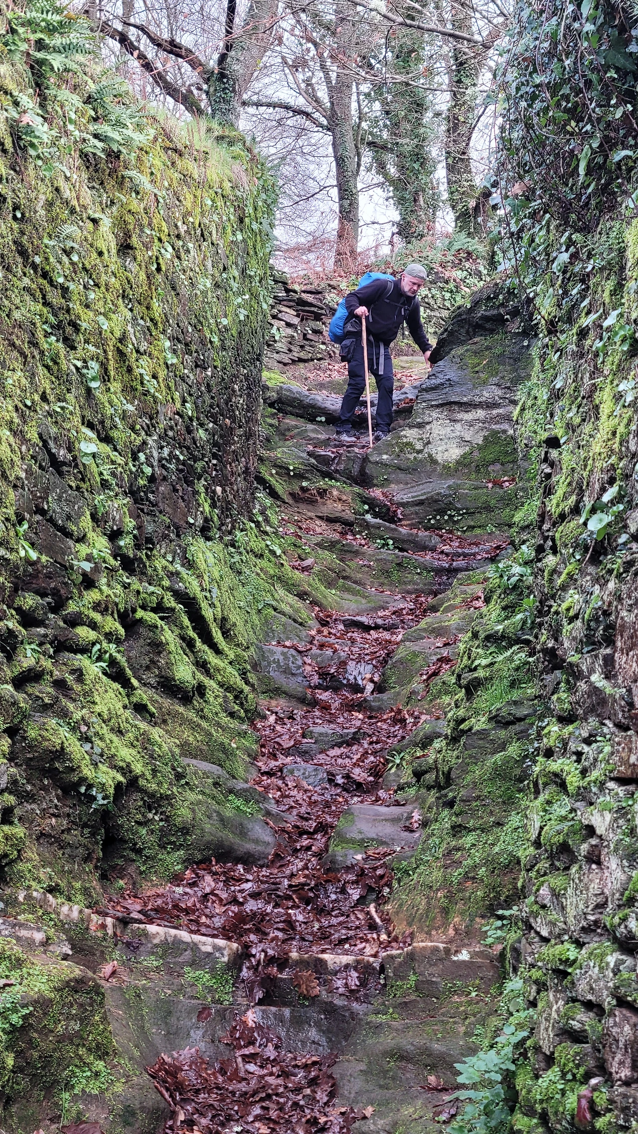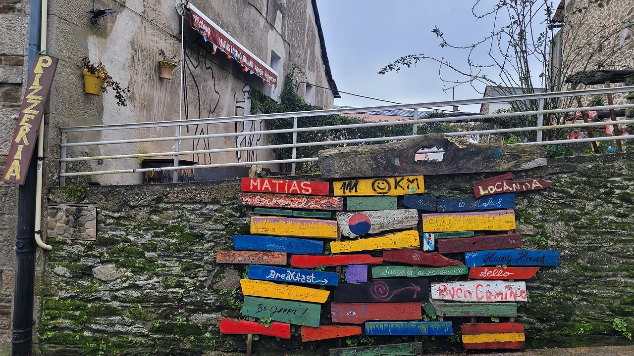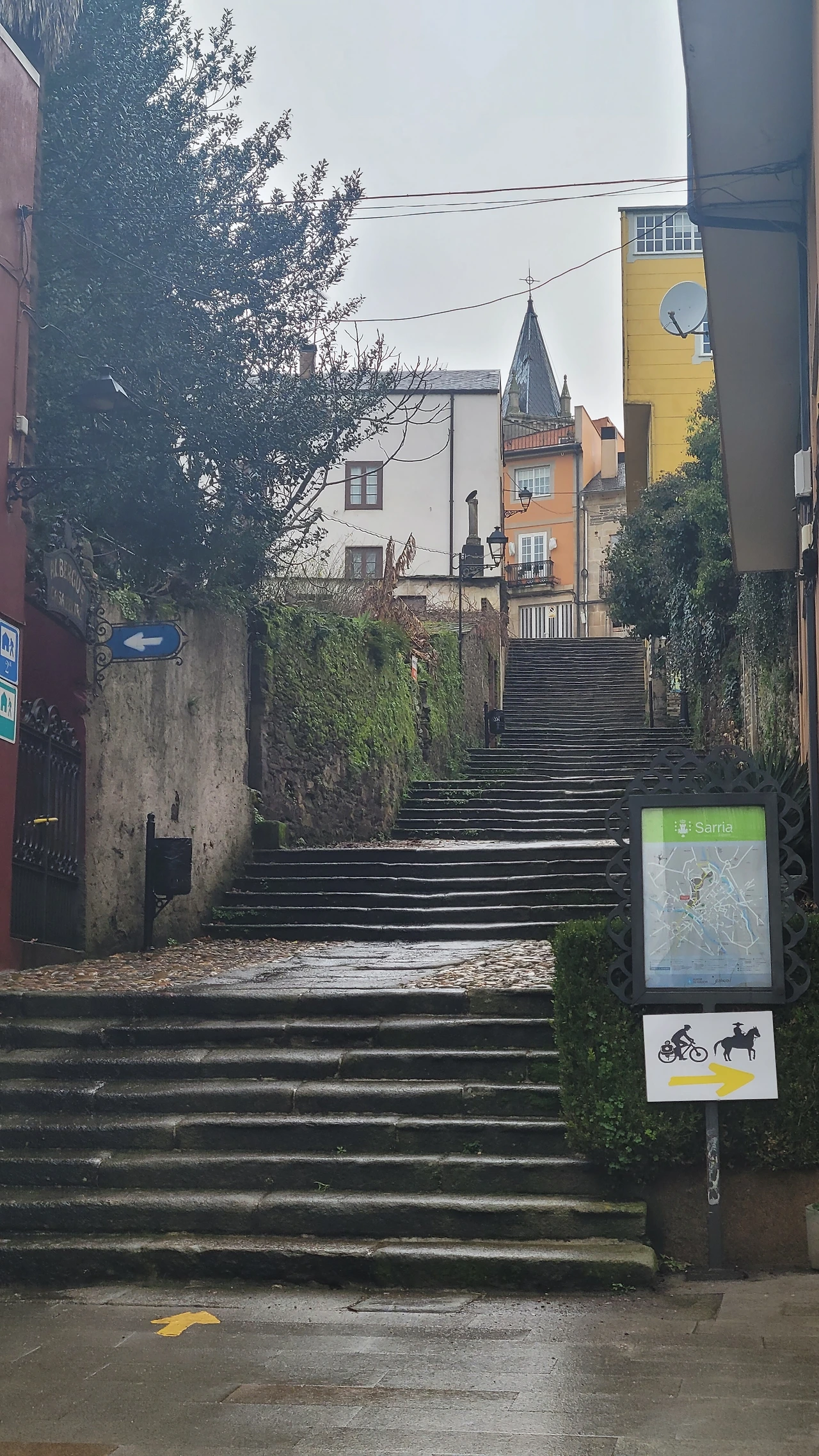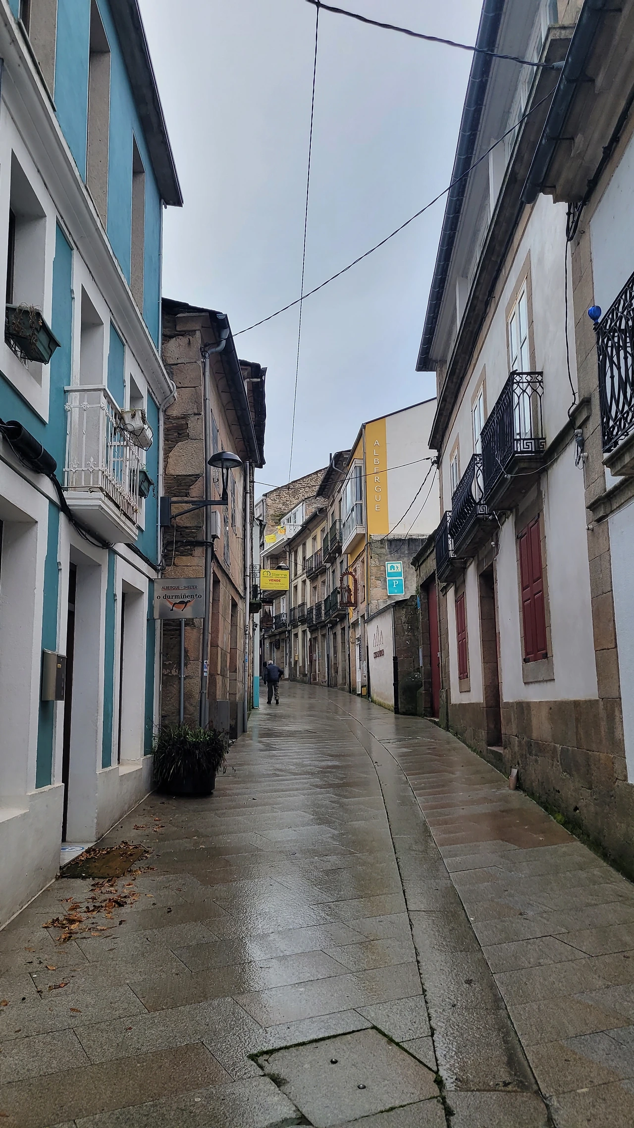 그때부터 준비해 6시 반쯤 겨울비가 추적추적 내리는 어두운 길로 나섰다. 우비의 뒷자락이 배낭에 걸려 내려가지 않으면 서로 내려줬는데 오늘은 혼자서 낑낑대며 해결해야 했다. 갈림길에서 까미노 표시가 안 보이면 그가 바로 휴대폰을 꺼내 확인해 줬는데 이젠 직접 찾아야 한다. 혼자서도 잘 다녔는데 2주 정도 나도 모르게 길들여졌구나. 오늘은 온전히 혼자서 모든 것을 해내야 한다.