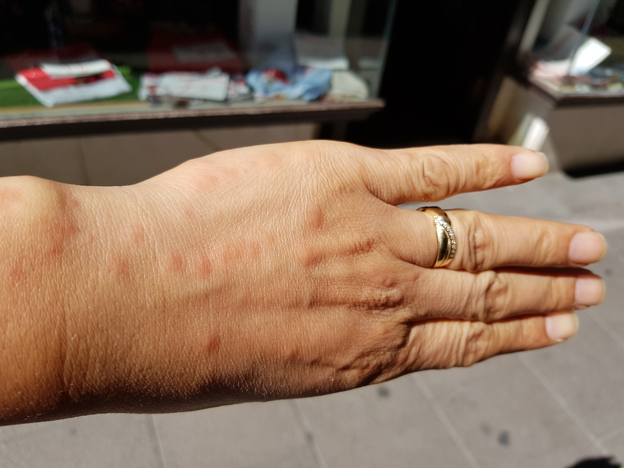 어젯밤 잠자리에 누웠는데 왼쪽 손등이 가려웠다. 저녁 만들면서 손에 묻는 기름기를 제대로 씻지 않아서 그런 건가 싶었다. 새벽길을 나서려고 짐을 챙기다 왼손을 보게 되었는데 손등에 혈관을 따라 발갛게 부어오른 곳이 스무 군데가 넘었다. 오른 손등도 대여섯 군데 있고 오른쪽 종아리 뒤에도 빨갛게 부어올라 간지럽다.