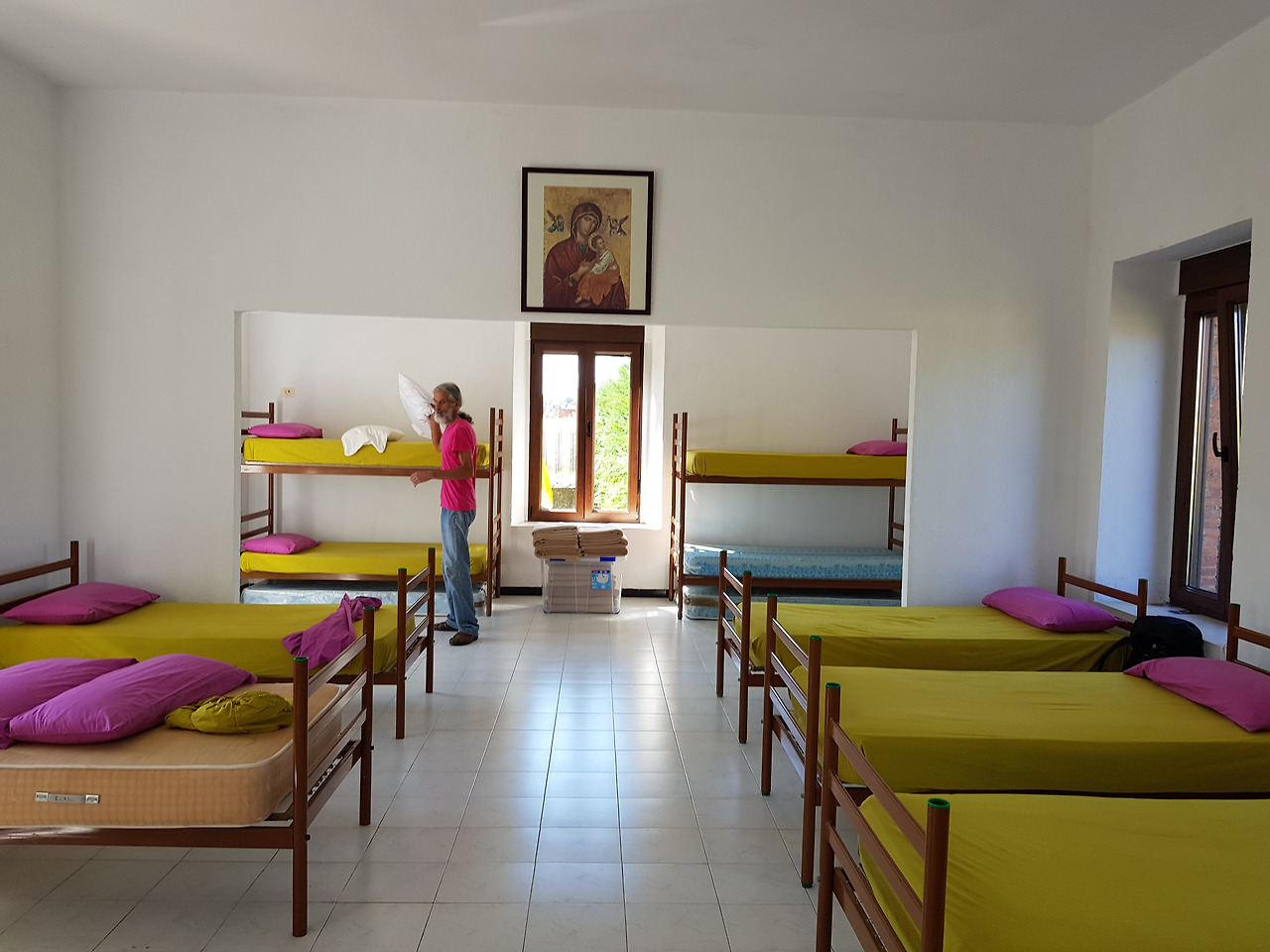 오늘 숙소는 그 분위기에 딱 어울리는 곳으로 정했다. 어제 숙소가 그동안 머물렀던 곳 중에서 최고의 시설을 갖춘 호스텔이었다면 오늘은 딱 필요한 것만 아주 소박하게 갖춘 공립 알베르게다. 숙박료도 5유로로 어제의 절반이다. 침대는 14개뿐인데 8개는 단층침대, 3개(6베드)는 2층 침대다. 겨울엔 온수가 제공되지 않는다고 하는데 초가을인 지금은 샤워실에 따뜻한 물이 아주 잘 나온다. 샤워부스도 별도로 있지 않고 화장실 한편에 있다. 물론 화장실도 남녀 각각 1개씩만 있다. 마당에 빨래를 할 수 있는 수도꼭지가 두개 있고 빨랫줄이 사람 수에 비해서는 꽤 여러 줄 쳐있다. 그리고 대부분의 숙소에는 별로 없거나 아예 없는 빨래집게가 상당히 많이 빨랫줄에 달려 있어서 오늘은 가져간 옷핀을 사용하지 않았다.
