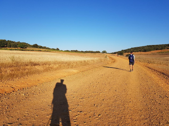 어제 잔 숙소는 특이하게 6시 전에 일어나지 말라고 써 붙어 있었다. 나처럼 5시부터 출발하려고 일찍부터 부스럭거리는 소리를 내는 사람이 있으면 느지막이 길을 나서려는 사람들의 새벽 단잠을 깨울 수 있기 때문이리라. 물론 그 마음을 십분 이해하나 일찍 출발하려는 사람에게는 본의 아니게 1시간이나 늦게 나섬으로 인해 한낮 뙤약볕에 한 시간 정도를 더 노출하며 걷게 되는 어려움이 있을 수밖에 없다. 그래도 주인의 영업 방침이니 어쩔 수 없이 1시간 정도를 침대에서 더 뭉개다가 짐을 챙겨 나왔다. 처음엔 고속도로를 끼고 계속 길이 이어져 쌩쌩 달리는 소리에 순례길의 정취를 느낄 수 없었는데 중간 지점부터 고속도로를 벗어나 산과 들판을 가로질러 작은 마을들을 지나가는 본연(?)의 까미노가 펼쳐졌다.