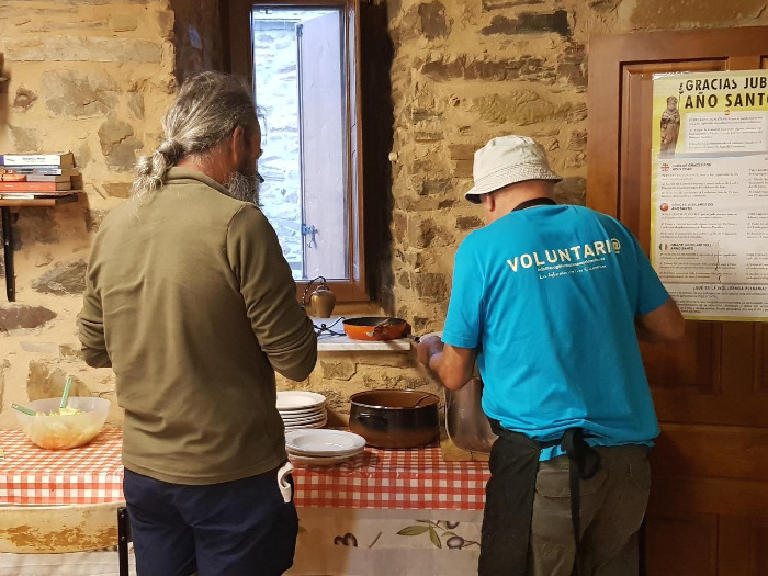 그동안 한 번도 이런 형태로 운영되는 곳은 가보지 않아 호텔에서 운영해서 수영장도 쓸 수 있는 시설 좋은 사설 알베르게를 포기하고 이곳을 찾아왔다. 숙소를 찾아왔을 때 이곳에서 일을 봐주시는 호스피탈레로가 막 문을 열려고 열쇠를 자물쇠에 집어넣고 있었다. 그한테서 숙소 운영방침에 대해 간단히 듣고 평소처럼 씻고 빨래하고 쉬다가 동네 구경도 하며 오후를 보냈다. 그러다 7시 50분쯤 종이 울렸다. 저녁식사 준비가 다 되었으니 모이라는 신호다.