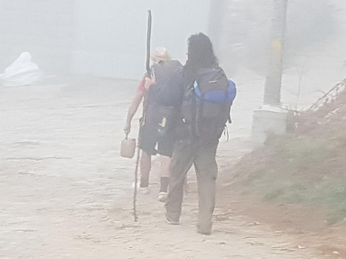 6시가 조금 넘은 시각. 짙은 안개로 인해 랜턴을 켰는데도 가시거리가 5m도 채 되지 않는다. 한참을 가도 인기척이 들리지 않는 어둠 속을 혼자 거닐 때면 불쑥 무엇인가 튀어나올 거 같은 공포심과 아무 방해도 받지 않고 온전히 나만의 세상에 놓여 있다는 황홀감이 함께 밀려온다. 큰 나무 밑을 지나는데 후드득 빗방울이 머리와 배낭 위로 떨어진다. 소나기인가?처음으로 느꼈다. 짙은 안개가 나뭇잎에 이슬처럼 맺혀 바람에 흔들려 떨어지는데 마치 비가 오는 것처럼 착각할 정도다. 걷다 보면 어는 곳은 물웅덩이가 생길 정도로 이슬비(?)가 많이 떨어진 곳도 있었다.