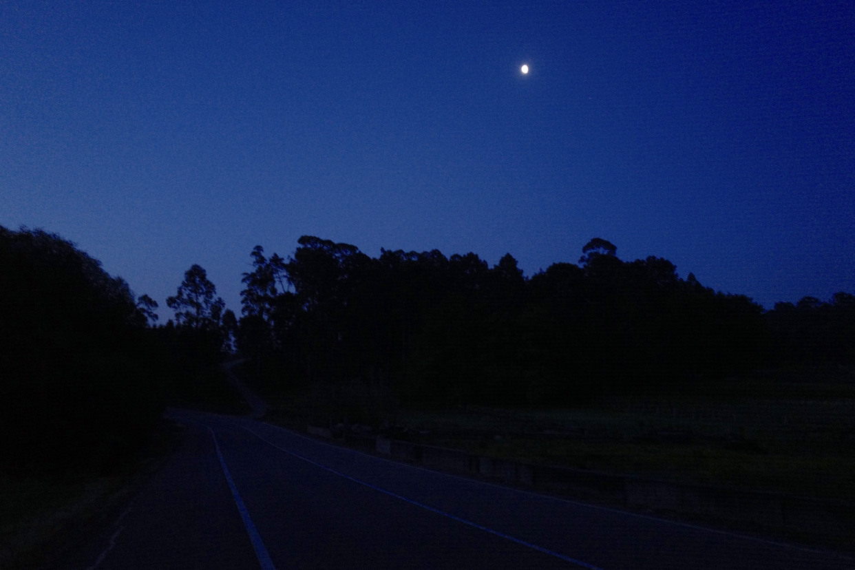 밤의 숲은 무섭습니다. 이것도 마치 걸음처럼 이틀 정도면 익숙해지겠지 했는데 아니었나 봅니다. 차가운 팻말을 볼 때면 등줄기가 서늘해지고, 가끔 보이는 농장에선 무서운 인형을 허수아비로 쓰다 보니 휑한 바람이 불면 괜히 겁이 납니다. 그리고 개가 컹컹 짖지요.