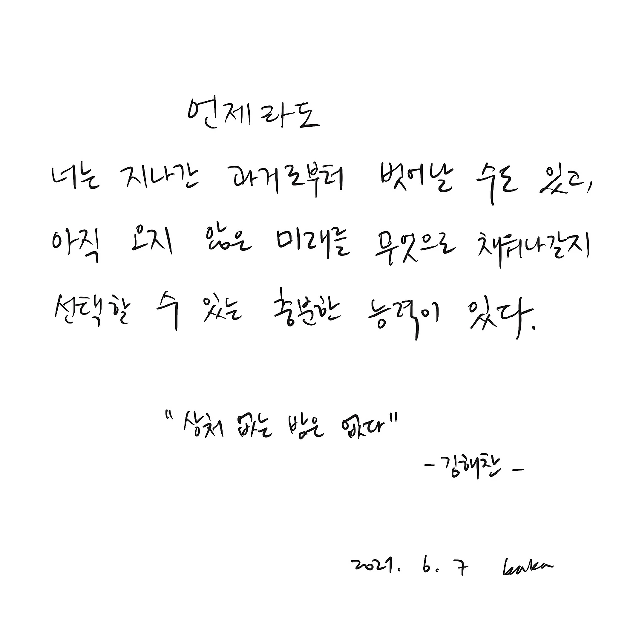 이번 필사 책 이름은 “상처없는 밤은 없다” 이다.