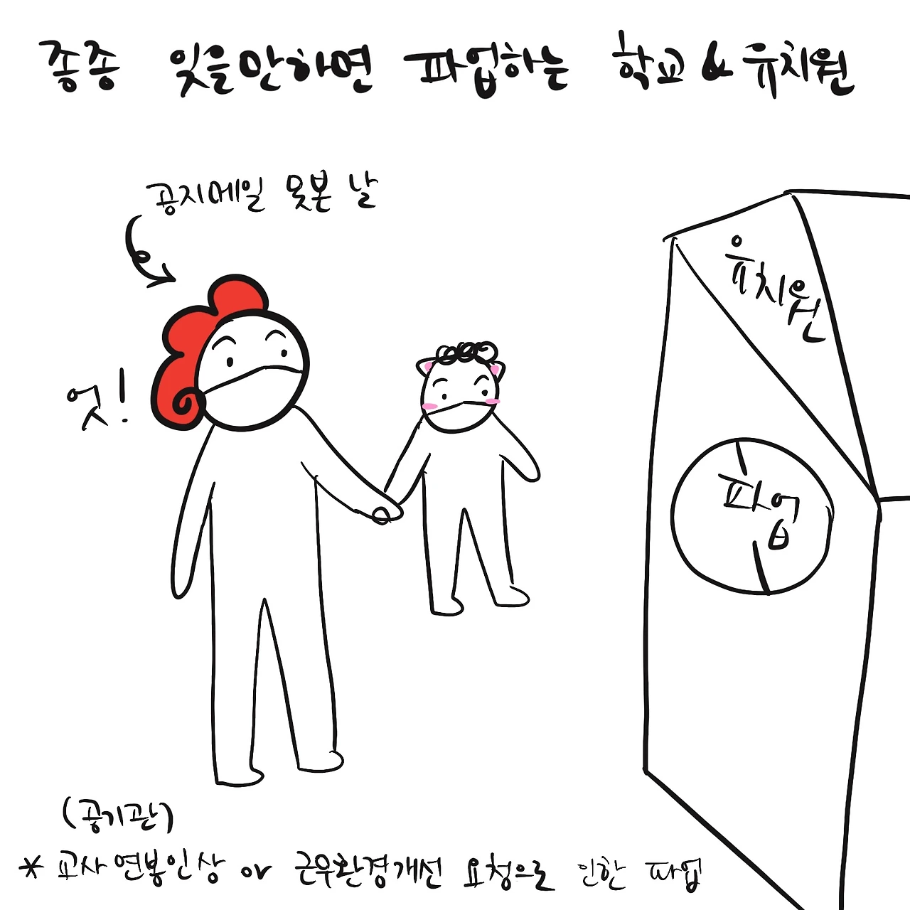 다만 부득이하게 집에서 아이를 돌보지 못할 경우 학교에서는 정규수업은 안하지만 돌봄교실은 운영한답니다.