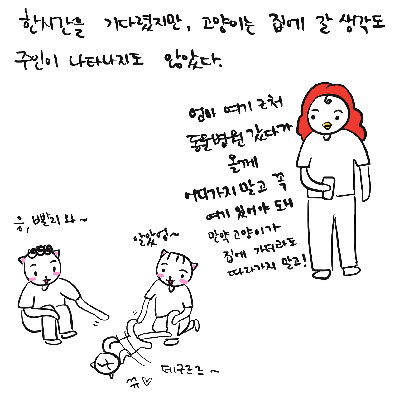 보통 산책냥일 경우 사람을 잘 따르다가도 가자 하면 자기 집으로 돌아가거나 제 갈길 가거든요.