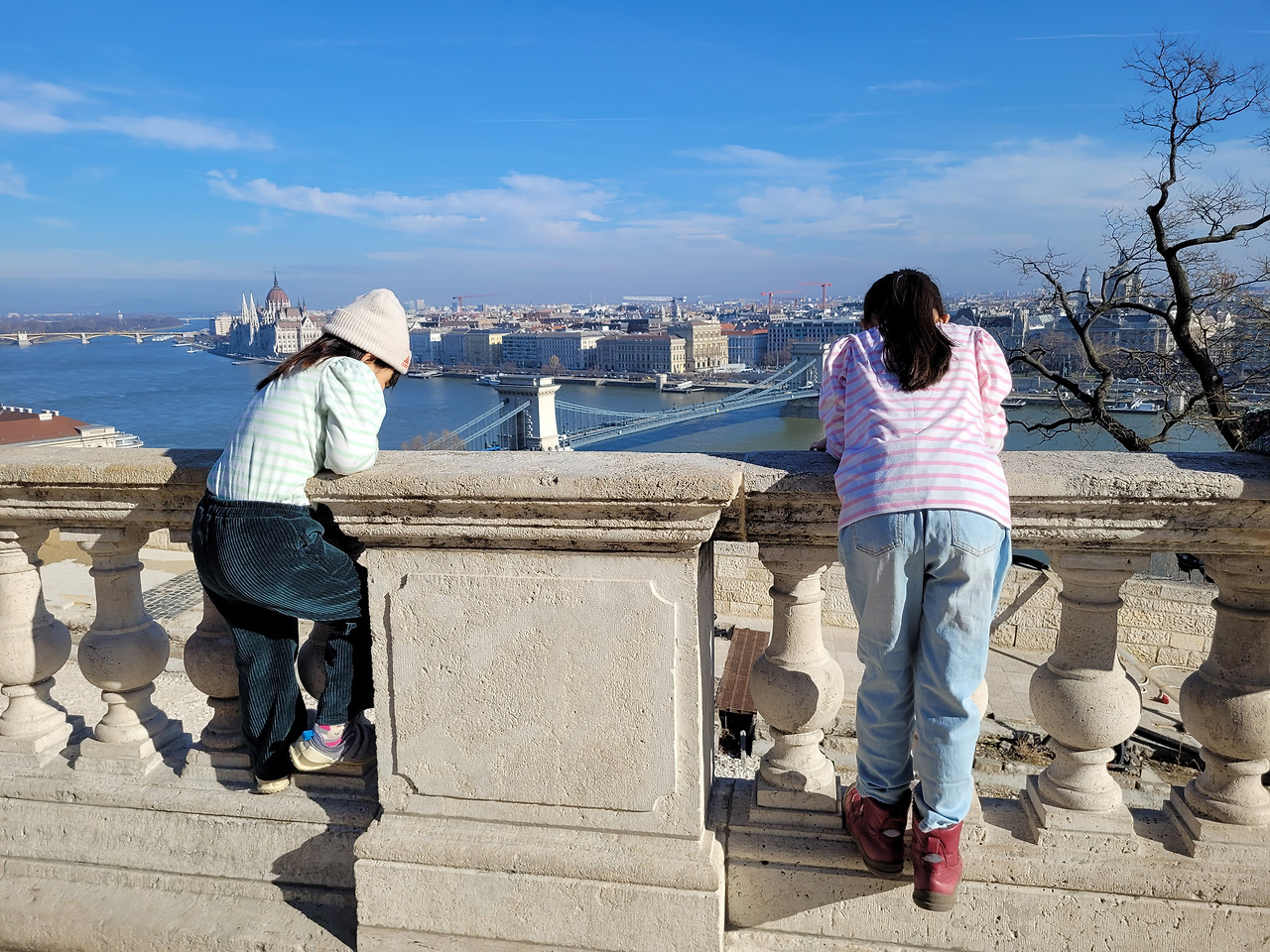 두 번째 날에는 관광객답게 관광지를 차례로 방문했다. 부다페스트의 이름은 강을 사이로 부다와 페스트지역을 뜻한다는 것이 새로웠다. 그리고 부다 쪽에 부다 성이 있어서일까? 부다 쪽이 잘 사는 지역이라고 했다. 부다성에 올라가면 부다페스트 전역을 한눈에 볼 수 있는데 정말 장관이었다. 특히 날씨가 너무 좋은 날이어서 여행기분을 마음껏 낼 수 있었다. 부다 성에 올라갈 때는 케이블카를 이용하여 올라갈 수 있는데 말이 케이블카지 타자마자 내린다. 왕복 이용 요금은 성인 4000 포린트 아동은 2000 포린트이다. 아이들이 있어서 케이블카를 탔지만, 계단으로 내려오며 보는 경치도 좋으니 굳이 탈 필요는 없을 것 같다. 이 케이블카는 부다 성을 짓는 인부들이 자재를 들고 오르락내리락하는 것이 힘들 듯하여 당시 왕이 인부들 편하게 일하라고 설치해 준 케이블카라고 한다.
