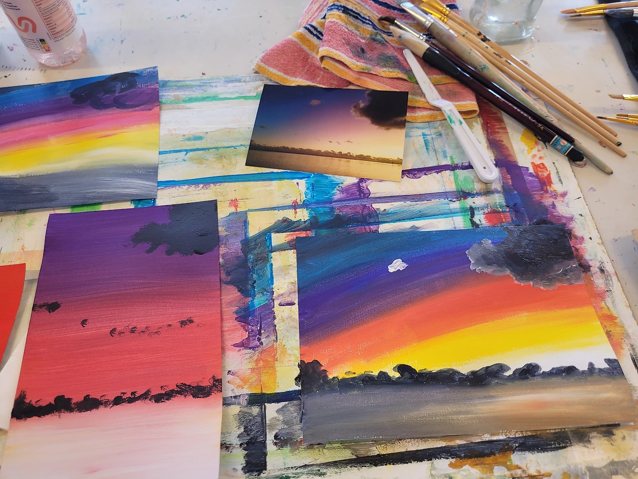 지난 시간에 했던 노을 사진을 보고 그동안 배운 방식대로 다시 한번 표현하는 시간을 가졌다.