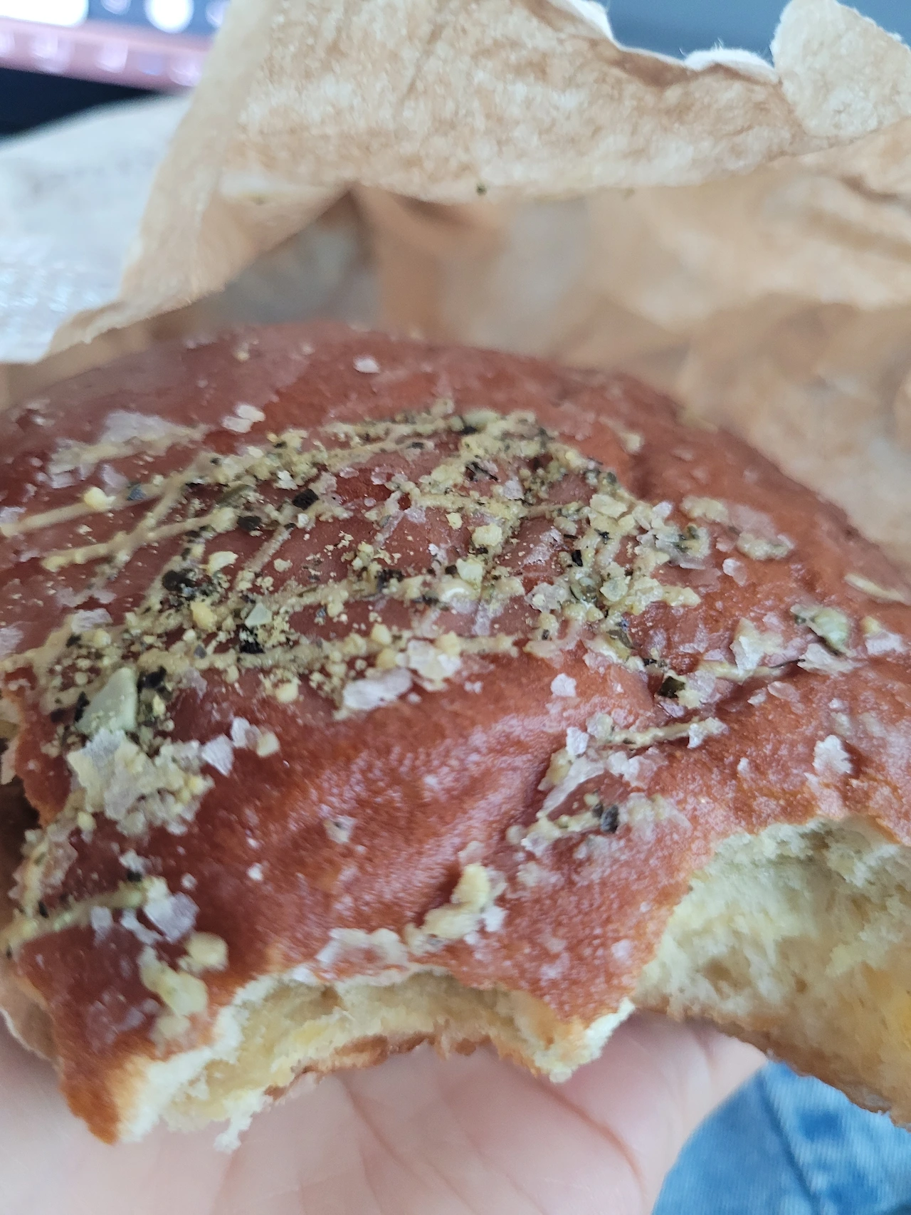 유명하다는 도너츠 맛집에서 피스타치오도너츠 한입. 추천!