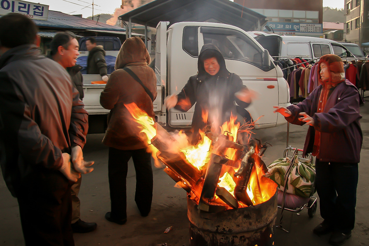 작은 통에 장작불을 지펴 몸을 녹이고 있는 장꾼들을 볼 때면 <그때 그 사람>이 문득 생각나곤 한다.