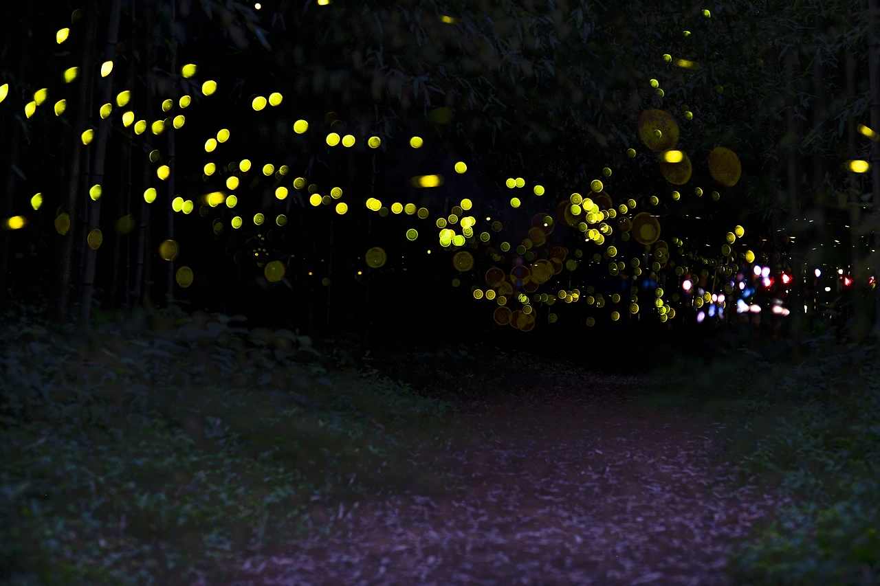 사진에 관심이 있는 사람이라면 짐작하겠지만, 반딧불이 류의 사진은 30초~1분 정도 셔터막을 완전 개방하는 장노출을 활용해야 한다. 그것도 원샷원킬이 아니라 삼각대로 화각을 고정한 채 같은 장면을 수십 수백 번 찍어야 한다. 그 화각 속으로 반딧불이가 불빛을 반짝이며 날아다니면 그 점점들이 아름다운 불빛으로 기록되는 거다. 그러니까 사진에 반딧불이 수백 마리가 날아다니는 듯한 장면은 사실은 몇 마리 정도가 몇 시간 동안 날아다닌 기록인 경우가 많다.